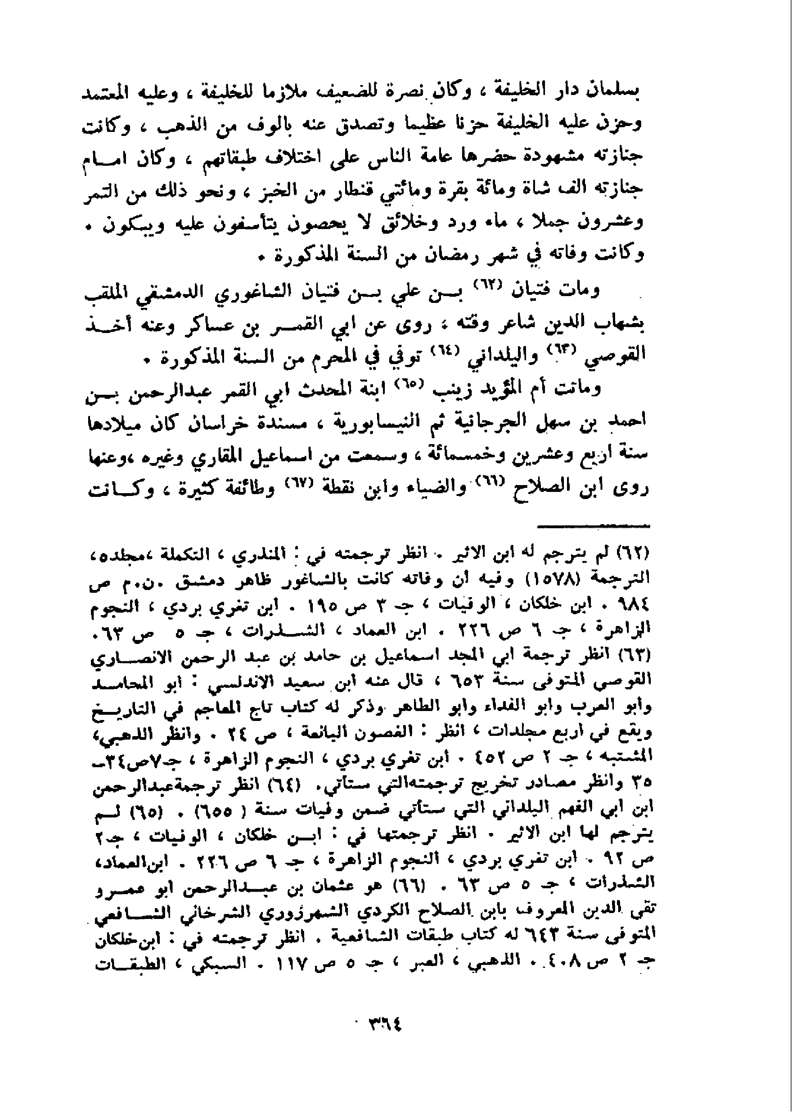 و ماتت أم المؤيد زينب 65 ابنة المحدث ابي القمر عبد الرحمن بن احمد بن سهل الجرجانية ثم النيسابورية، مسندة خراسان كان ميلادها سنة اربع وعشرين وخمسمائة، وسمعت من اسماعيل المقاري وغيره، وعنها روى ابن الصلاح 66 و الضياء وابن نقطة 67 و طائفة كثيرة، وكانت