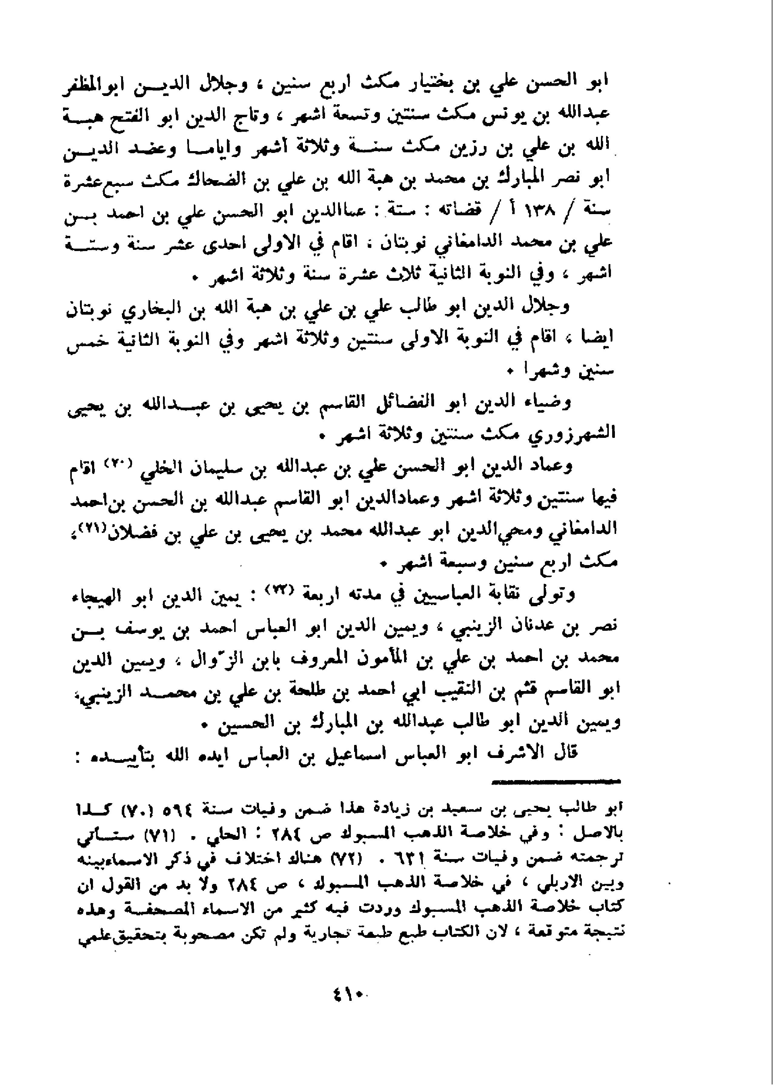 و عماد الدين ابو الحسن علي بن عبد الله بن سليمان الخلي 70 اقام فيها سنتين وثلاثة اشهر وعماد الدين ابو القاسم عبد الله بن الحسن بن احمد الدامغاني ومحي الدين ابو عبد الله محمد بن يحيى بن علي بن فضلان 71، مكث اربع سنين وسبعة اشهر.