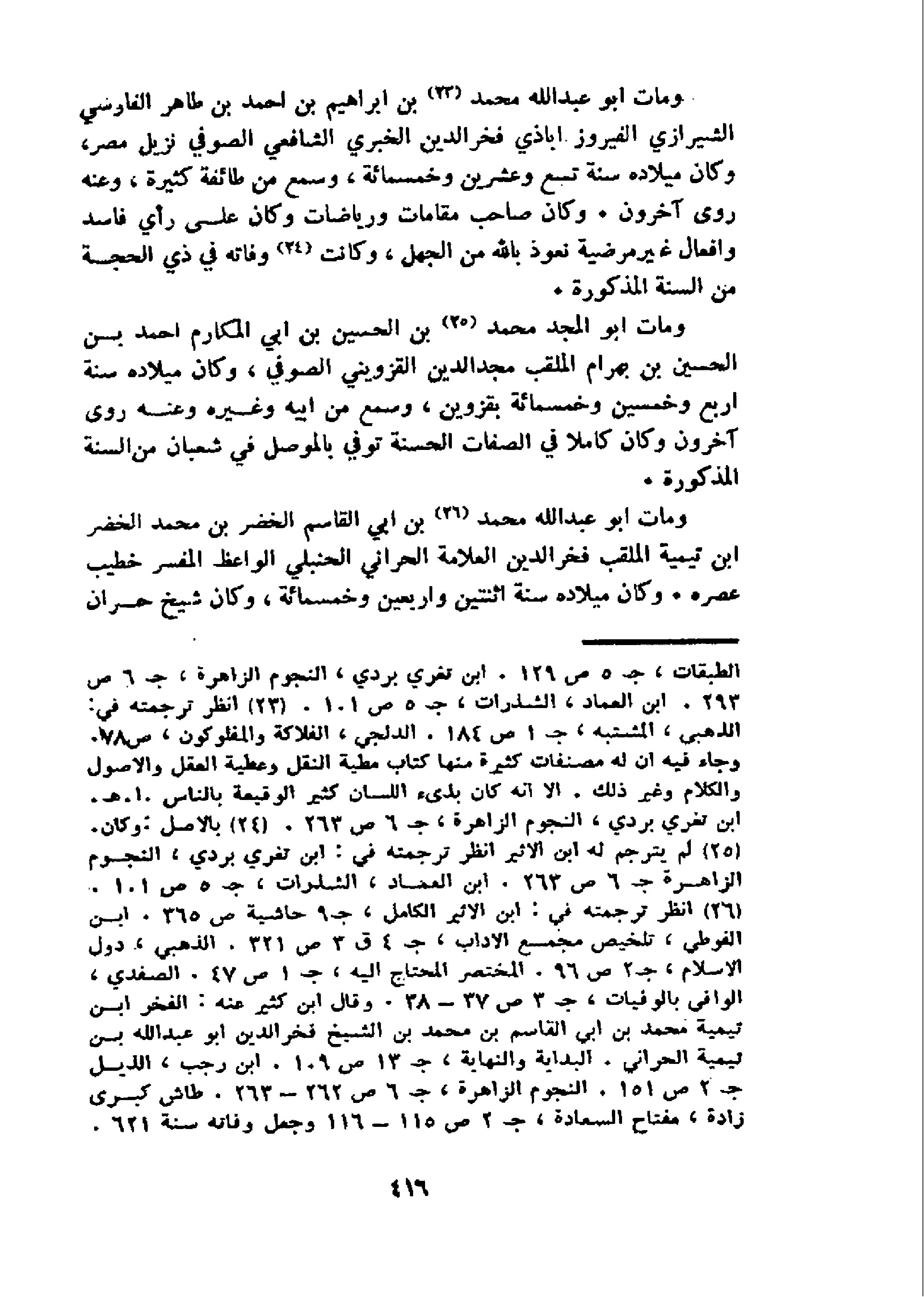 و مات ابو عبد الله محمد 23 بن ابراهيم بن احمد بن طاهر الفارسي الشيرازي الفيروزاباذي فخر الدين الخبري الشافعي الصوفي نزيل مصر، وكان ميلاده سنة تسع وعشرين وخمسمائة، وسمع من طائفة كثيرة، وعنه روى آخرون. وكان صاحب مقامات ورياضات وكان على رأي فاسد وافعال غير مرضية نعوذ باللّه من الجهل، وكانت 24 وفاته في ذي الحجة من السنة المذكورة.