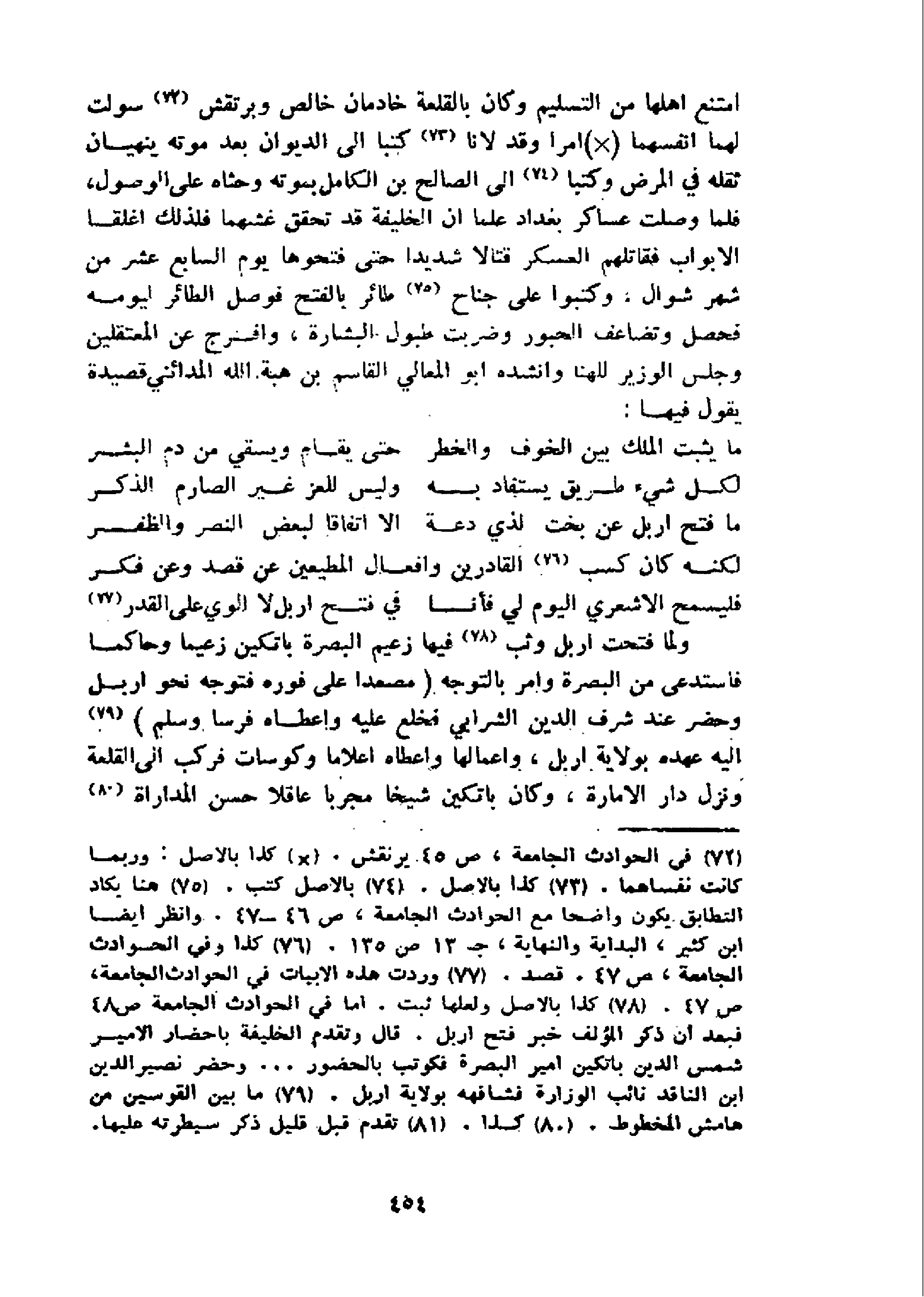 ما فتح اربل عن بخت لذي دعة الا اتفاقا لبعض النصر والظفر