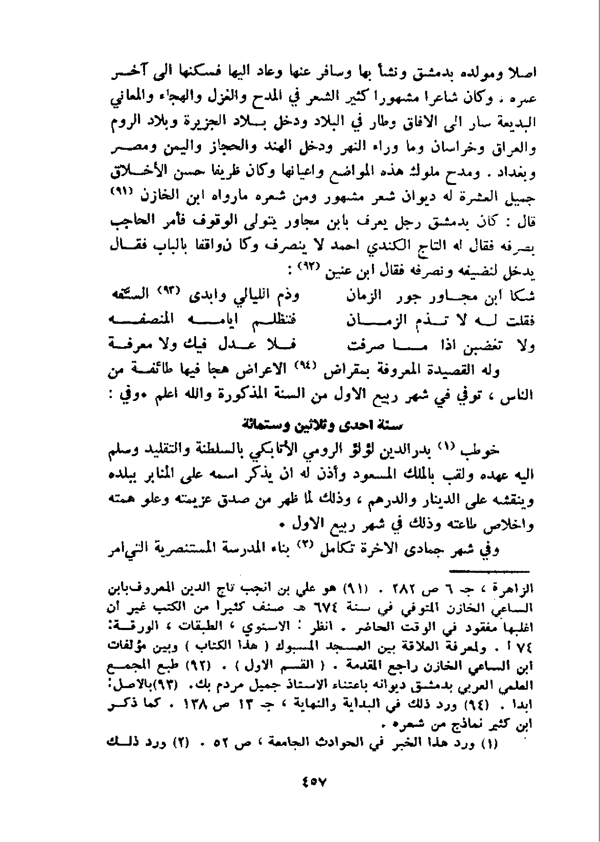 شكا ابن مجاور جور الزمان وذم الليالي وابدى 93 السّفه