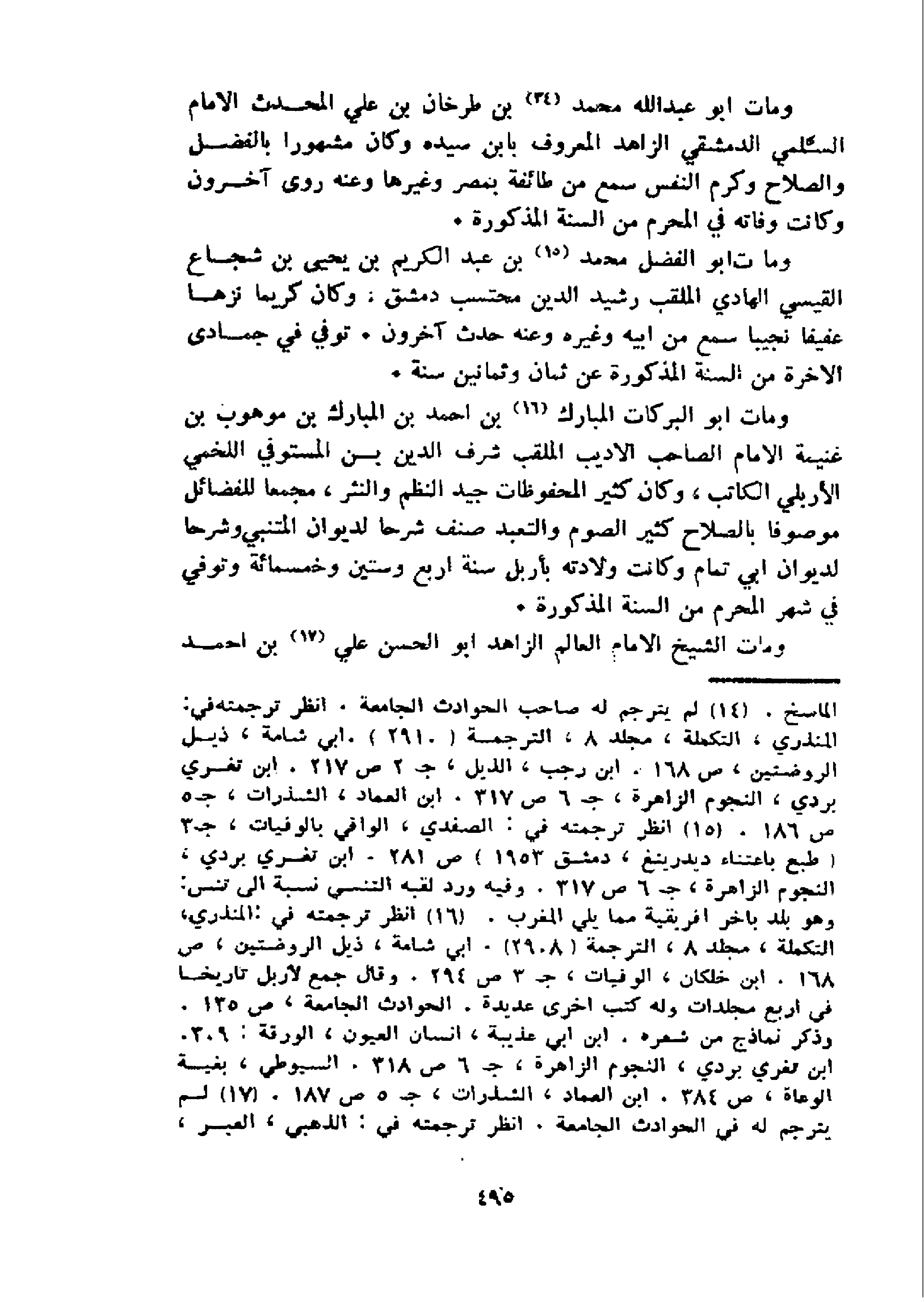و مات ابو عبد الله محمد 14 بن طرخان بن علي المحدث الامام السّلمي الدمشقي الزاهد المعروف بابن سيده وكان مشهورا بالفضل والصلاح وكرم النفس سمع من طائفة بمصر وغيرها وعنه روى آخرون وكانت وفاته في المحرم من السنة المذكورة.