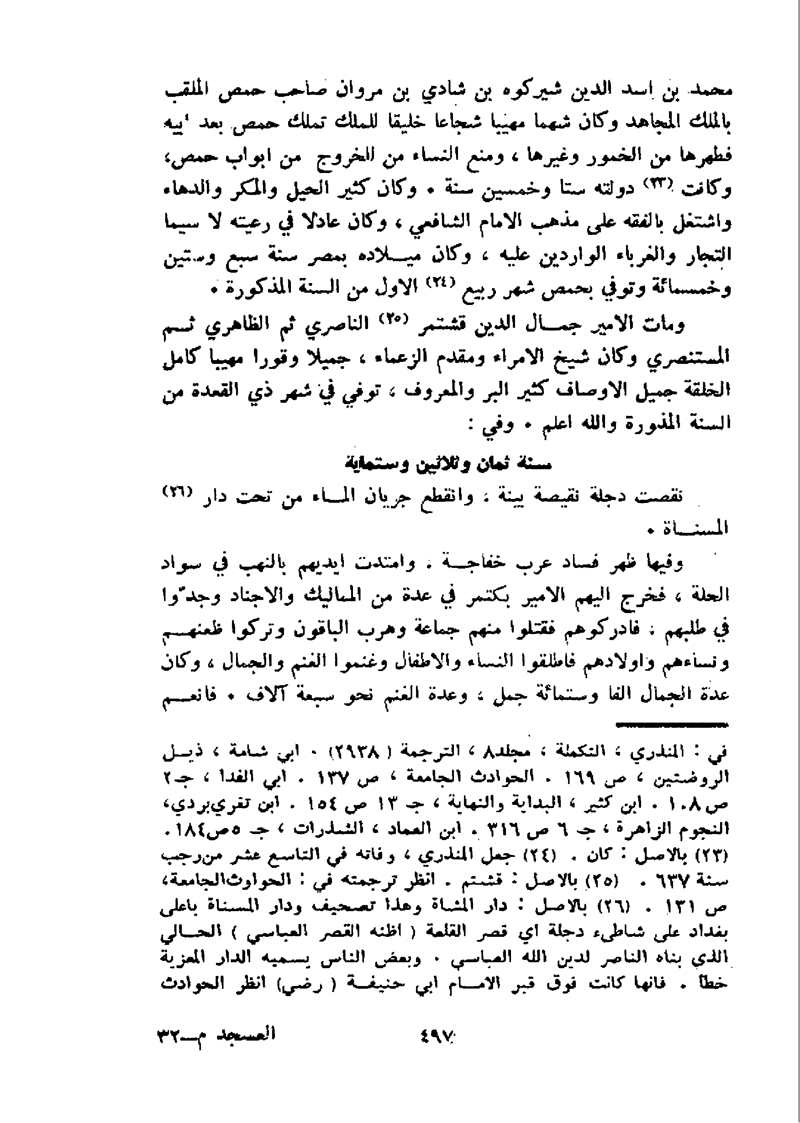 محمد بن اسد الدين شيركوه بن شادي بن مروان صاحب حمص الملقب بالملك المجاهد وكان شهما مهيبا شجاعا خليقا للملك تملك حمص بعد ابيه فطهرها من الخمور وغيرها، ومنع النساء من الخروج من ابواب حمص، وكانت 23 دولته ستا وخمسين سنة. وكان كثير الحيل والمكر والدهاء واشتغل بالفقه على مذهب الامام الشافعي، وكان عادلا في رعيته لا سيما التجار والغرباء الواردين عليه، وكان ميلاده بمصر سنة سبع وستين وخمسمائة وتوفي بحمص شهر ربيع 24 الاول من السنة المذكورة.