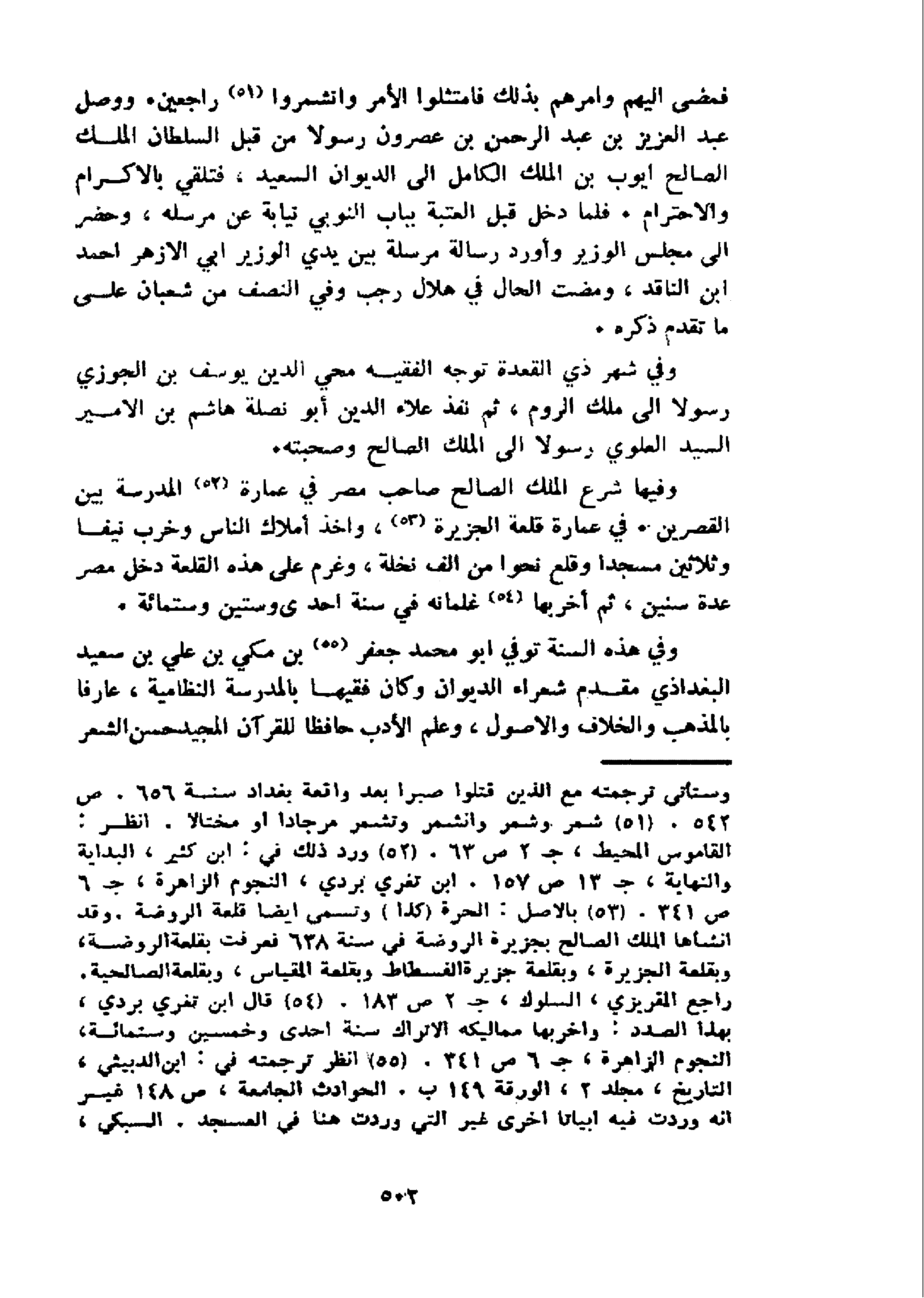 فمضى اليهم وامرهم بذلك فامتثلوا الأمر وانشمروا 51 راجعين. ووصل عبد العزيز بن عبد الرحمن بن عصرون رسولا من قبل السلطان الملك الصالح ايوب بن الملك الكامل الى الديوان السعيد، فتلقي بالاكرام والاحترام. فلما دخل قبل العتبة بباب النوبي نيابة عن مرسله، وحضر الى مجلس الوزير وأورد رسالة مرسلة بين يدي الوزير ابي الازهر احمد ابن الناقد، ومضت الحال في هلال رجب وفي النصف من شعبان على ما تقدم ذكره.