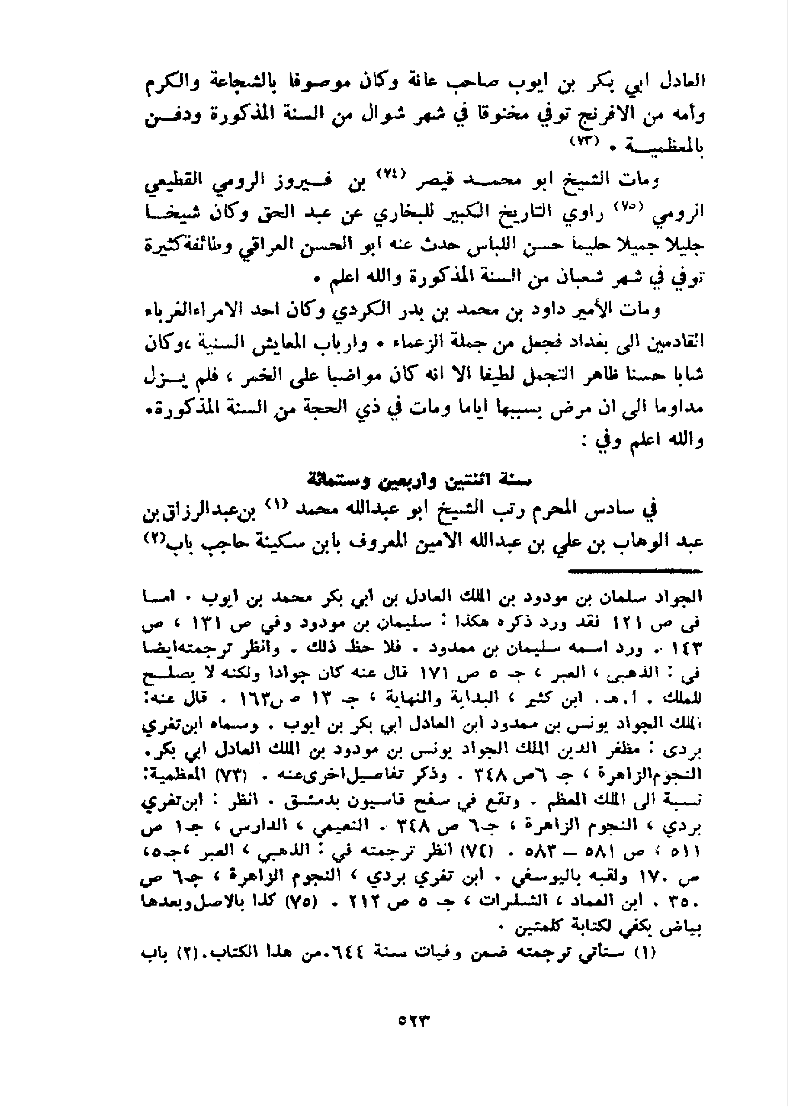 العادل ابي بكر بن ايوب صاحب عانة وكان موصوفا بالشجاعة والكرم وأمه من الافرنج توفي مخنوقا في شهر شوال من السنة المذكورة ودفن بالمعظمية. 73