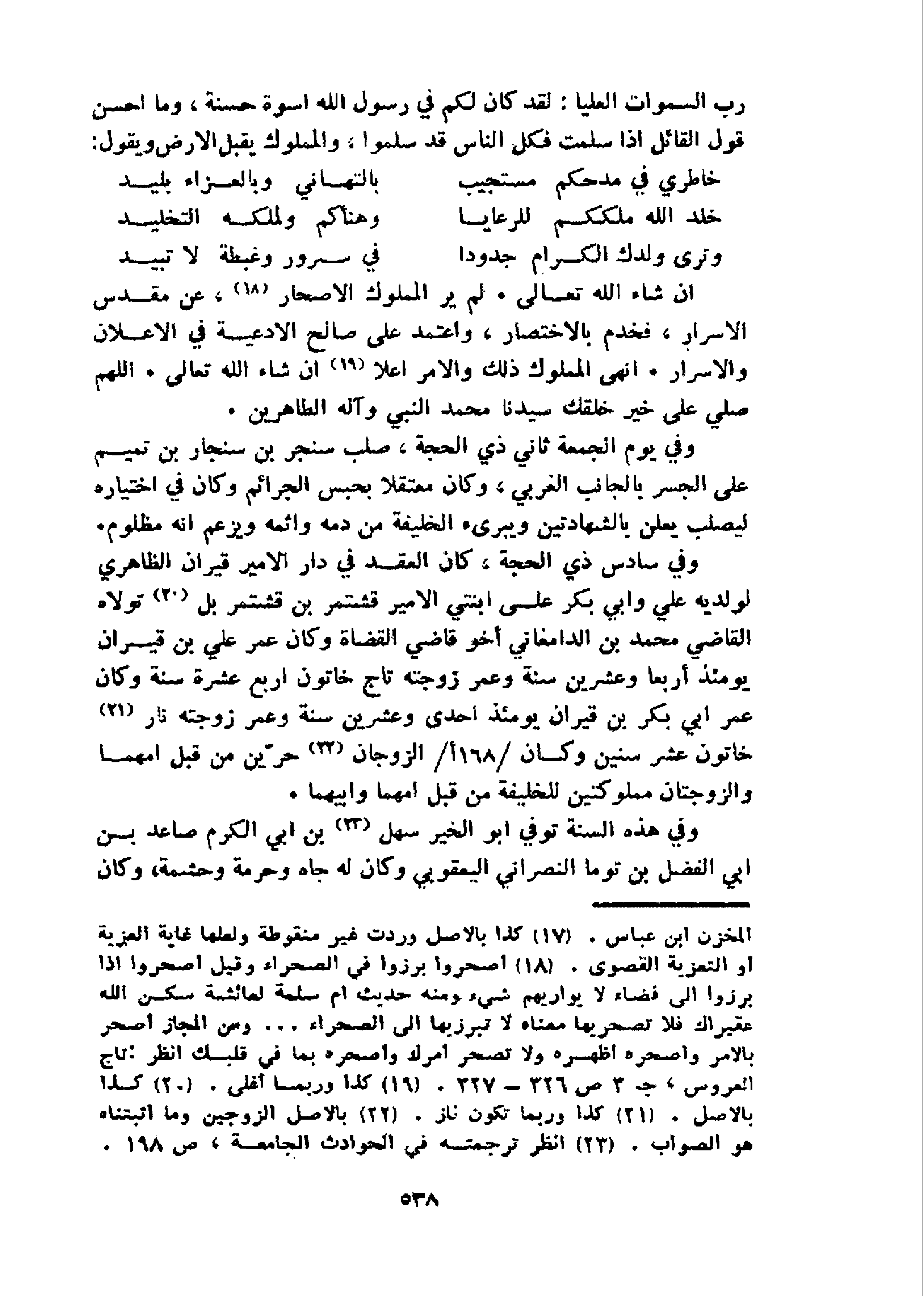 و في هذه السنة توفي ابو الخير سهل 23 بن ابي الكرم صاعد بن ابي الفضل بن توما النصراني اليعقوبي وكان له جاه وحرمة وحشمة، وكان