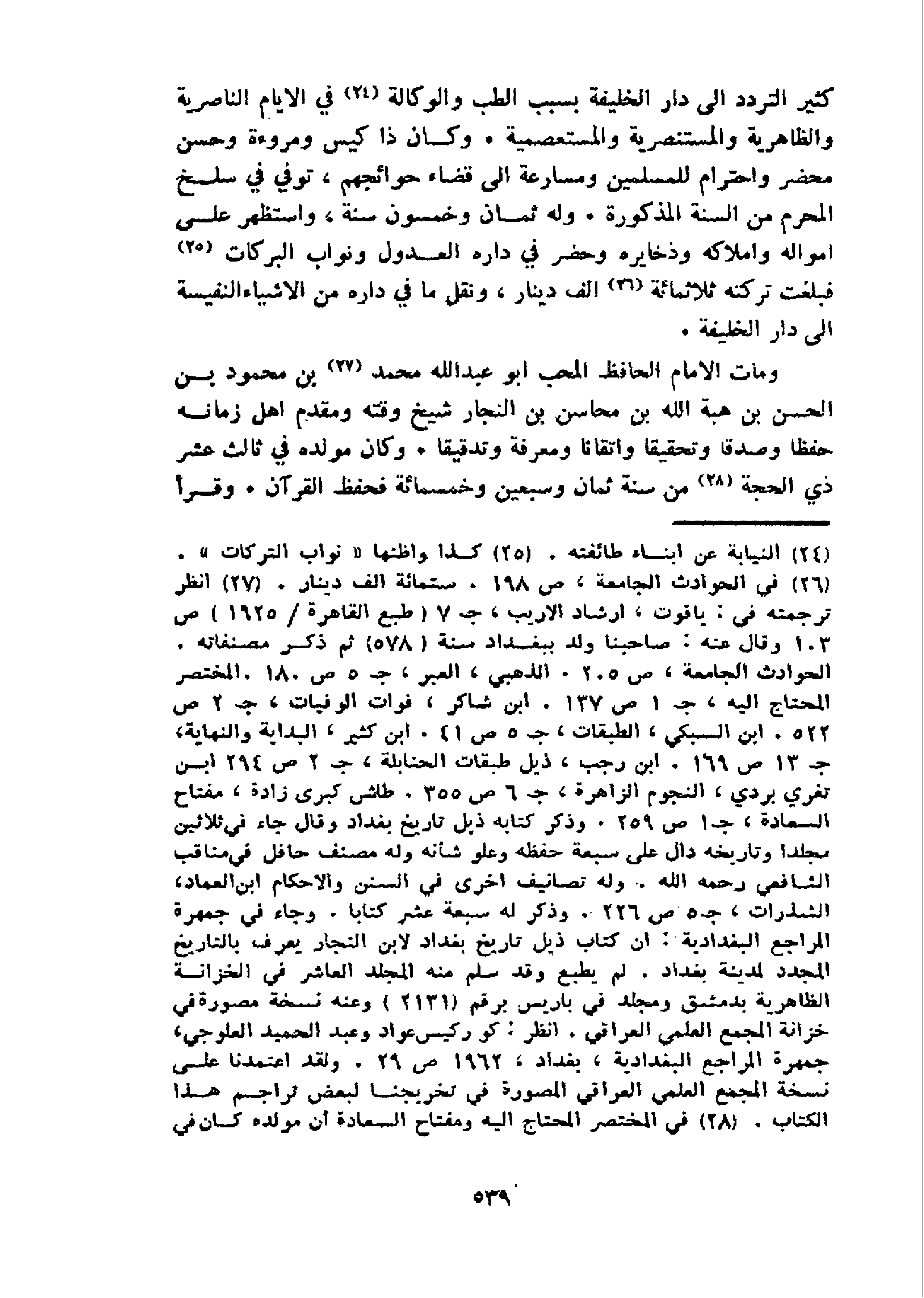 و مات الامام الحافظ المحب ابو عبد الله محمد 27 بن محمود بن الحسن بن هبة الله بن محاسن بن النجار شيخ وقته ومقدم اهل زمانه حفظا وصدقا وتحقيقا واتقانا ومعرفة وتدقيقا. وكان مولده في ثالث عشر ذي الحجة 28 من سنة ثمان وسبعين وخمسمائة فحفظ القرآن. وقرأ