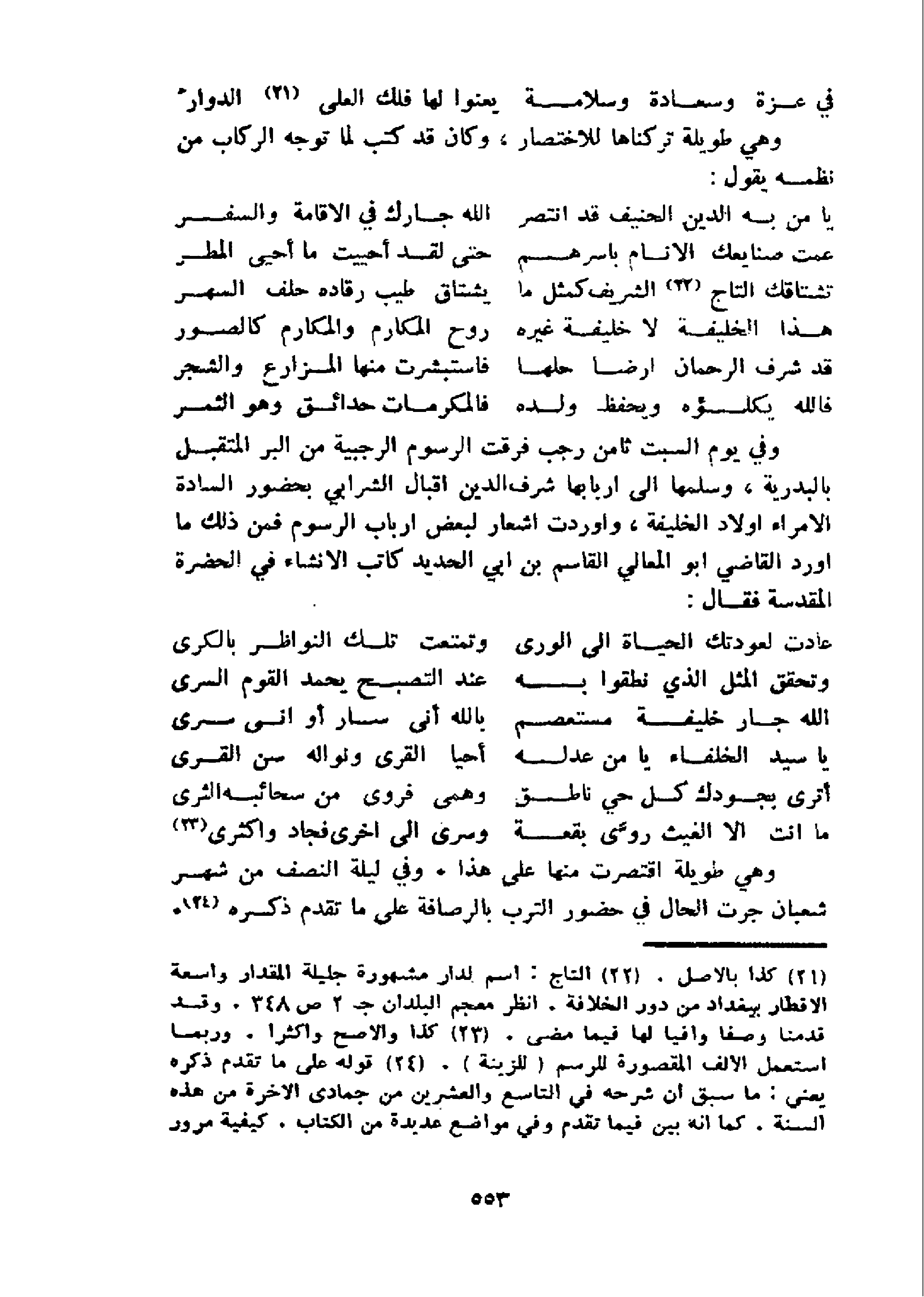 و هي طويلة اقتصرت منها على هذا. وفي ليلة النصف من شهر شعبان جرت الحال في حضور الترب بالرصافة على ما تقدم ذكره 24.
