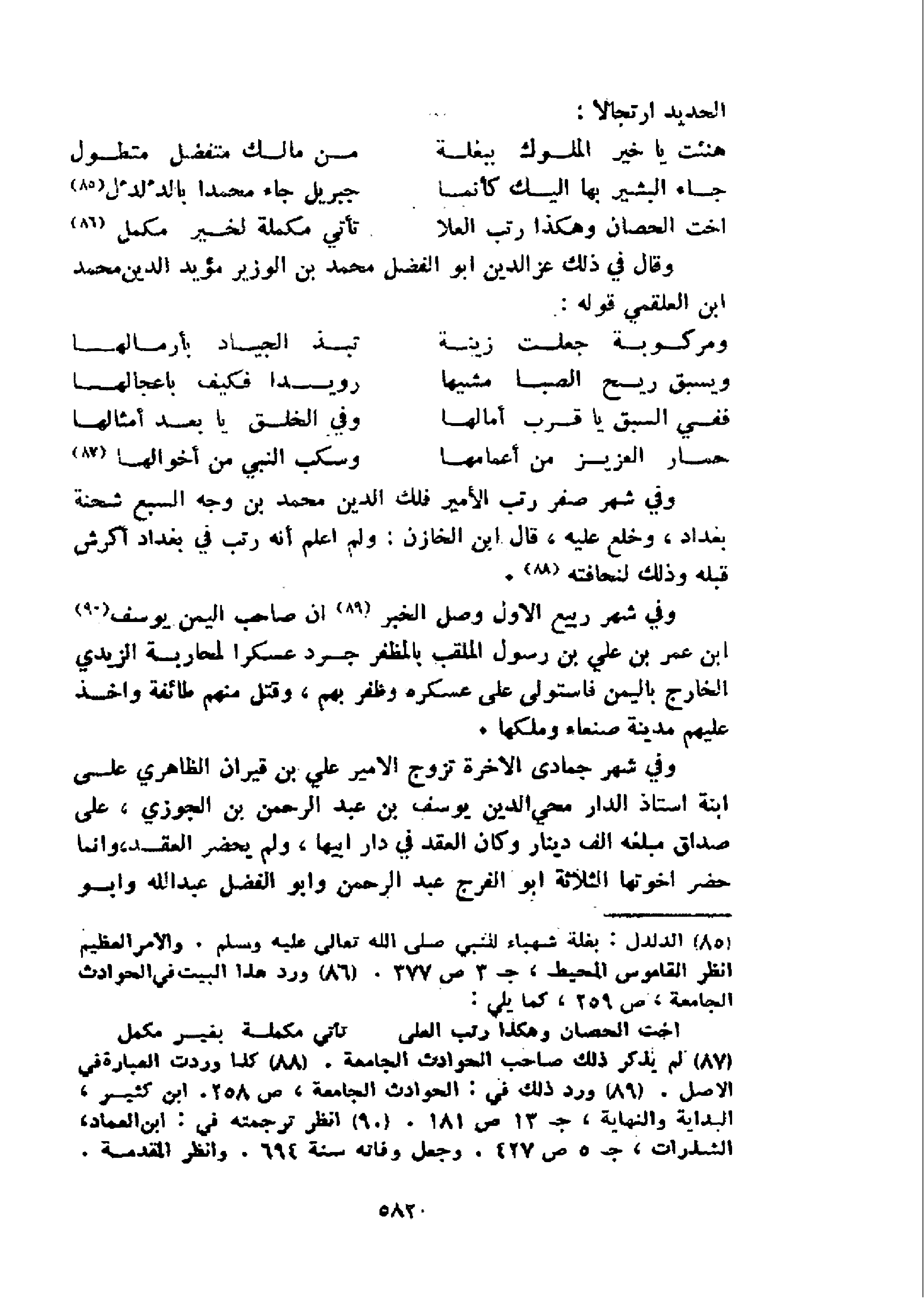 و قال في ذلك عز الدين ابو الفضل محمد بن الوزير مؤيد الدين محمد ابن العلقمي قوله: