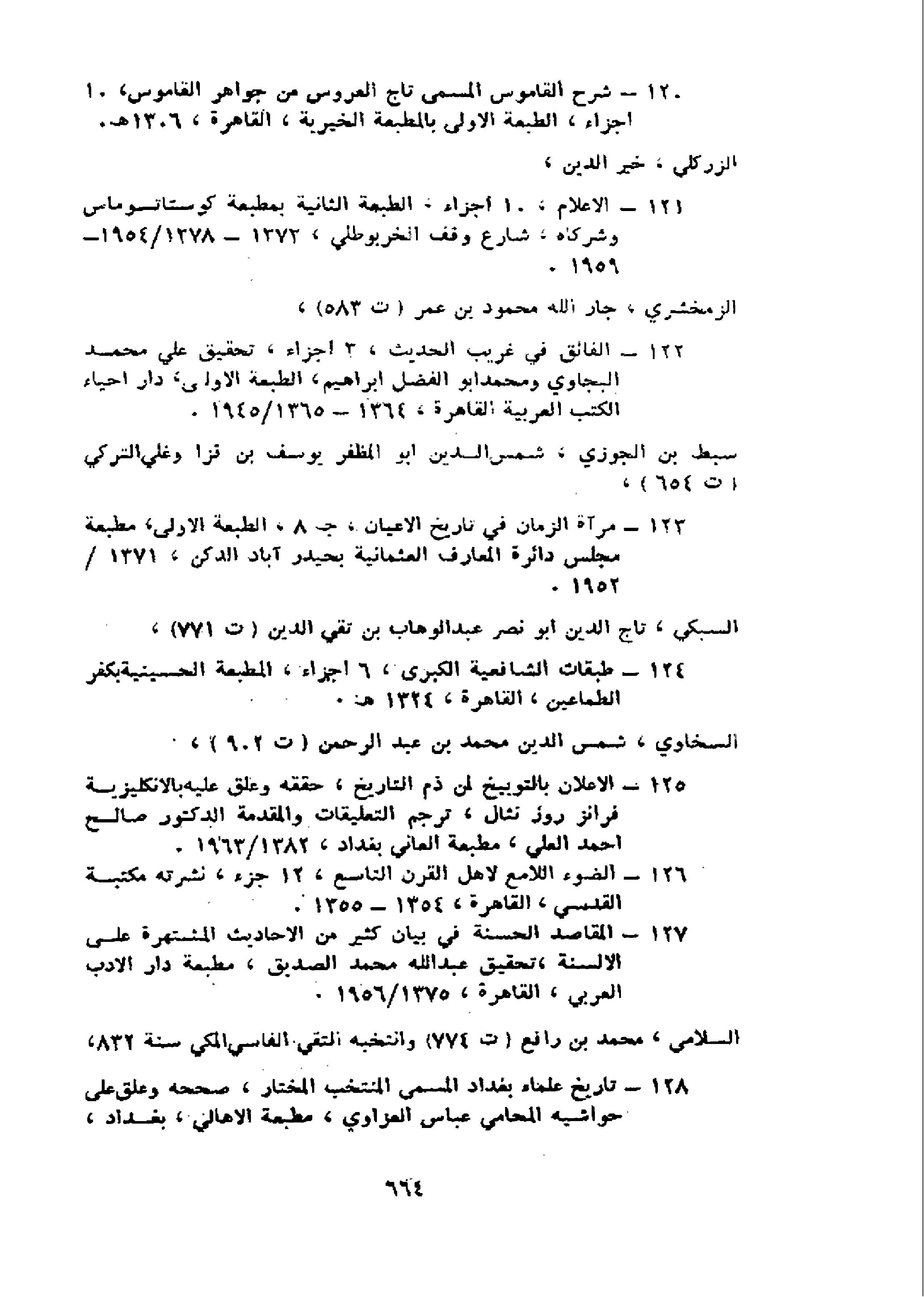 121 - الاعلام، 10 أجزاء، الطبعة الثانية بمطبعة كوستاتسوماس وشركاه، شارع وقف الخربوطلي، 1373 - 1954/ 1378 - 1959.