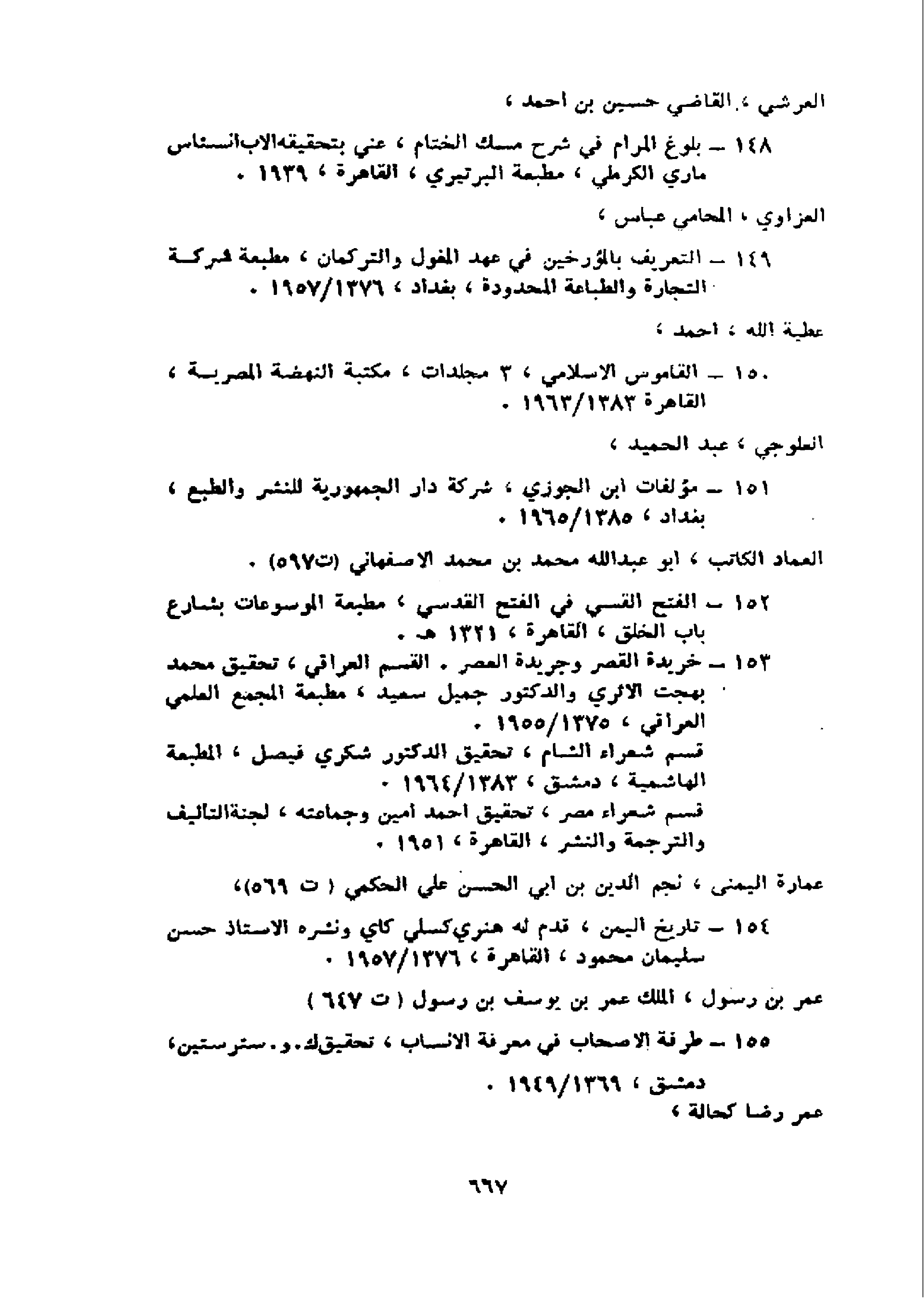 151 - مؤلفات ابن الجوزي، شركة دار الجمهورية للنشر والطبع، بغداد، 1965/ 1385.