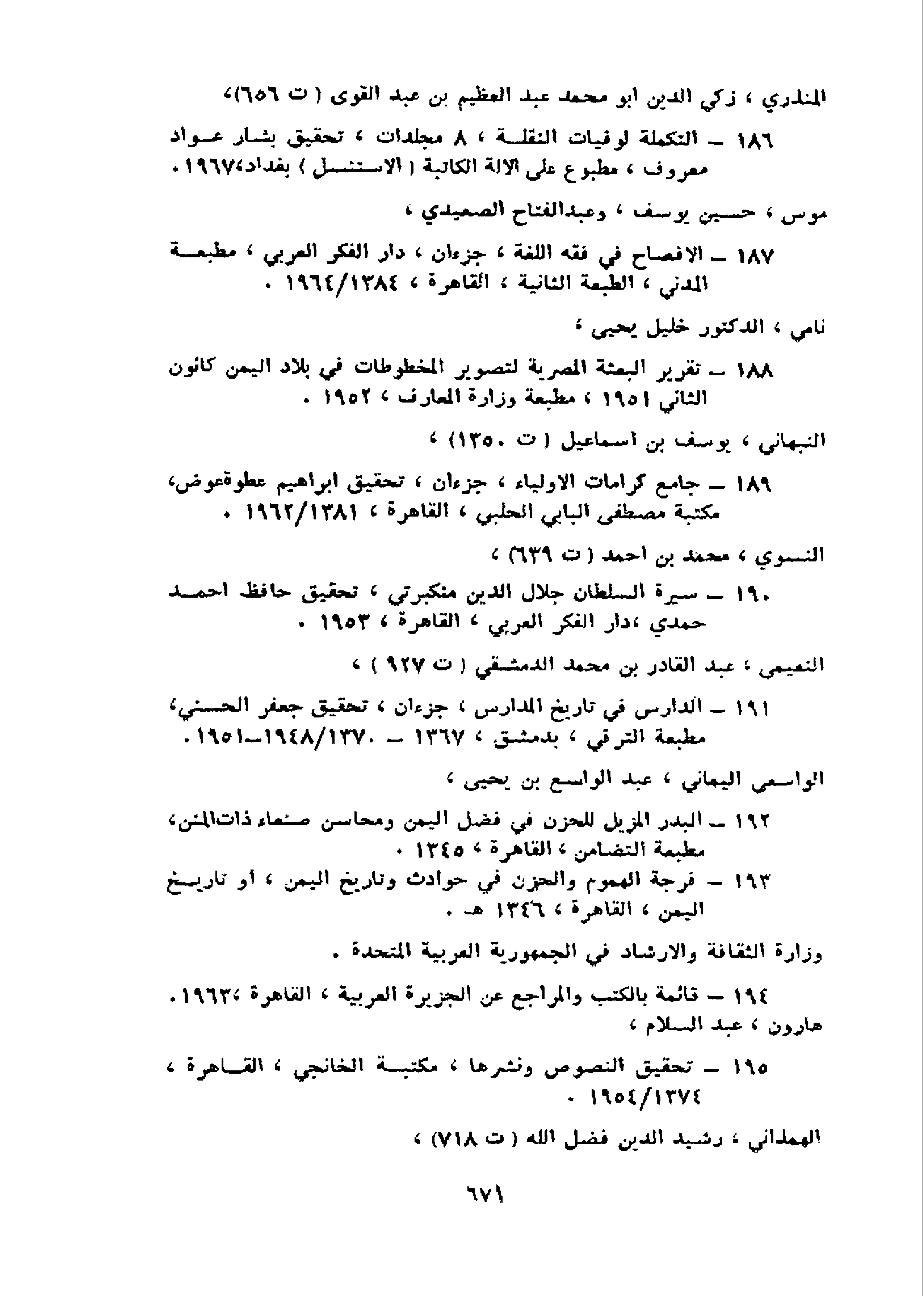 186 - التكملة لوفيات النقلة، 8 مجلدات، تحقيق بشار عواد معروف، مطبوع على الالة الكاتبة (الاستنسل) بغداد، 1967.