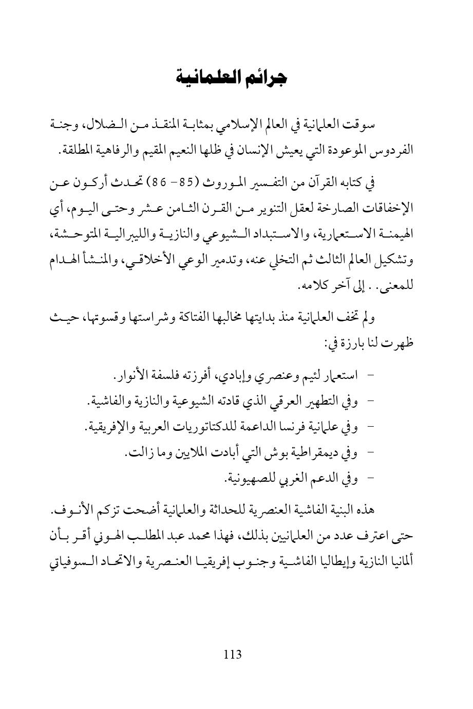 ولم تخف العلمانية منذ بدايتها مخالبها الفتاكة وشراستها وقسوتها، حيث ظهرت لنا بارزة في: