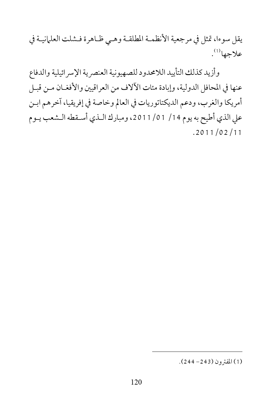 يقل سوءا، تمثل في مرجعية الأنظمة المطلقة وهي ظاهرة فشلت العلمانية في علاجها (¬1).