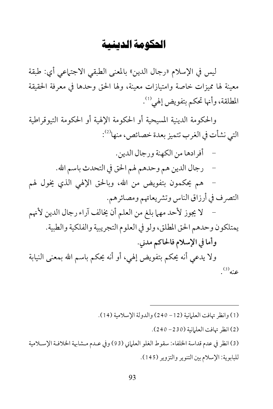 (¬1) وانظر تهافت العلمانية (12 - 240) والدولة الإسلامية (14).