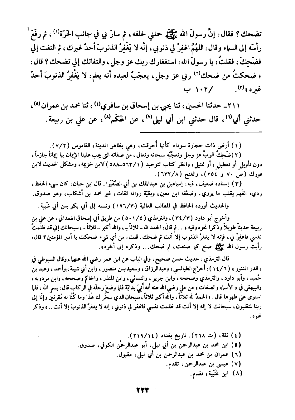 211 - حَدَّثَنَا الْحُسَيْنُ ثنا يَحْيَى بْنُ إِسْحَاقَ بْنِ سَافِرِيٍّ، ثنا مُحَمَّدُ بْنُ عِمْرَانَ، حَدَّثَنِي أَبِي قَالَ: حَدَّثَنِي ابْنُ أَبِي لَيْلَى، عَنِ الْحَكَمِ، عَنْ عَلِيِّ بْنِ رَبِيعَةَ -[224]-، عَنْ عَلِيِّ بْنِ أَبِي طَالِبٍ عَنِ النَّبِيِّ صَلَّى اللهُ عَلَيْهِ وَسَلَّمَ أَنَّهُ كَانَ إِذَا وَضَعَ رِجْلَهُ فِي الرِّكَابِ قَالَ: «§بِسْمِ اللَّهِ» , فَإِذَا اسْتَوَى عَلَى الدَّابَّةَ قَالَ: «الْحَمْدُ لِلَّهِ» ثُمَّ قَالَ: " {سُبْحَانَ الَّذِي سَخَّرَ لَنَا هَذَا وَمَا كُنَّا لَهُ مُقْرِنِينَ , وَإِنَّا إِلَى رَبِّنَا لَمُنْقَلِبُونَ} [الزخرف: 14] , وَكَبَّرَ ثَلَاثًا , وَهَلَّلَ ثَلَاثًا "