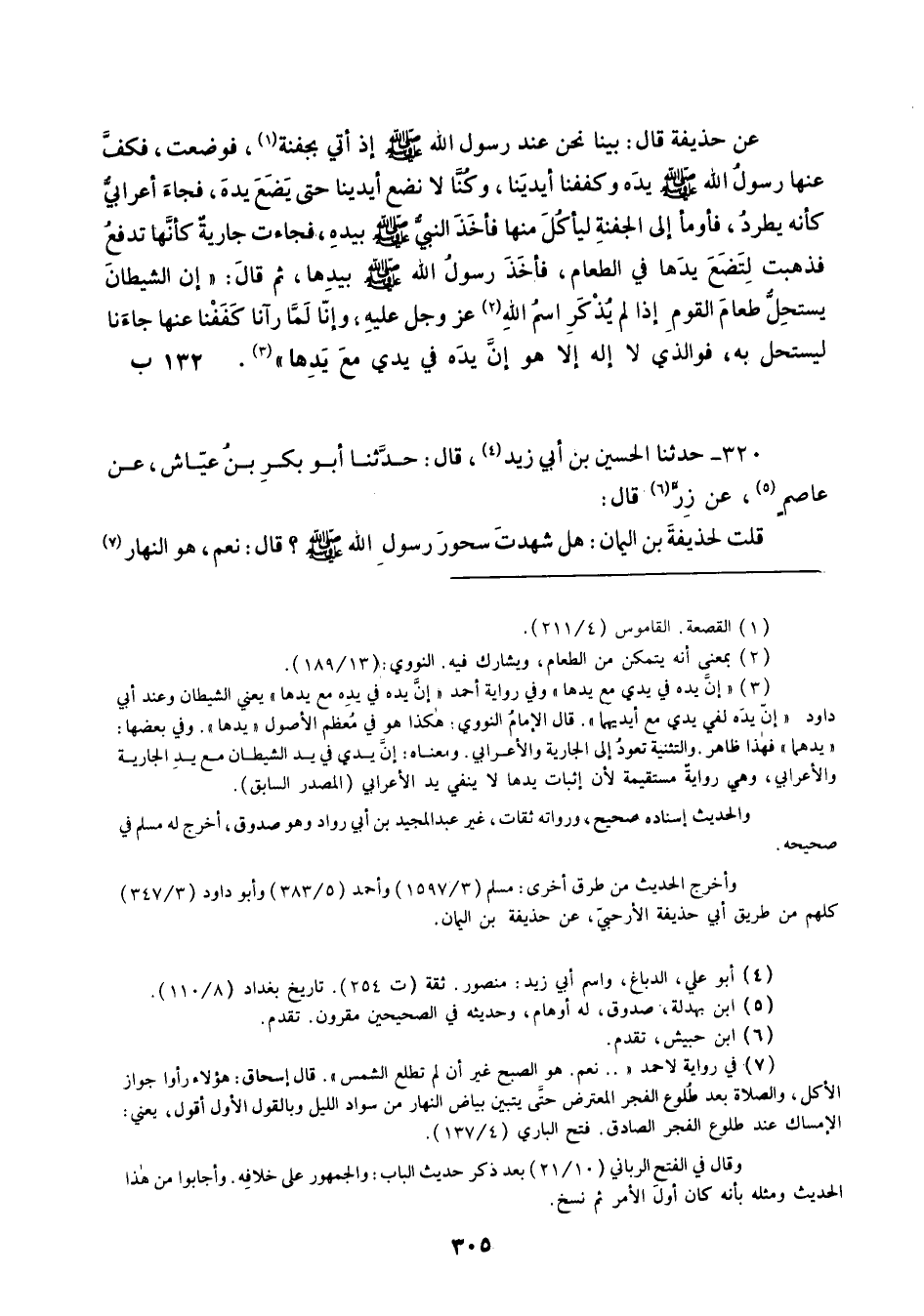 320 - حَدَّثَنَا الْحُسَيْنُ بْنُ أَبِي زَيْدٍ قَالَ: حَدَّثَنَا أَبُو بَكْرِ بْنُ عَيَّاشٍ، عَنْ عَاصِمٍ، عَنْ زِرٍّ قَالَ: قُلْتُ لِحُذَيْفَةَ بْنِ الْيَمَانِ §هَلْ شَهِدْتَ سُحُورَ رَسُولِ اللَّهِ صَلَّى اللهُ عَلَيْهِ وَسَلَّمَ؟ قَالَ: «نَعَمْ هُوَ النَّهَارُ إِلَّا أَنَّ الشَّمْسَ لَمْ تَطْلُعْ»