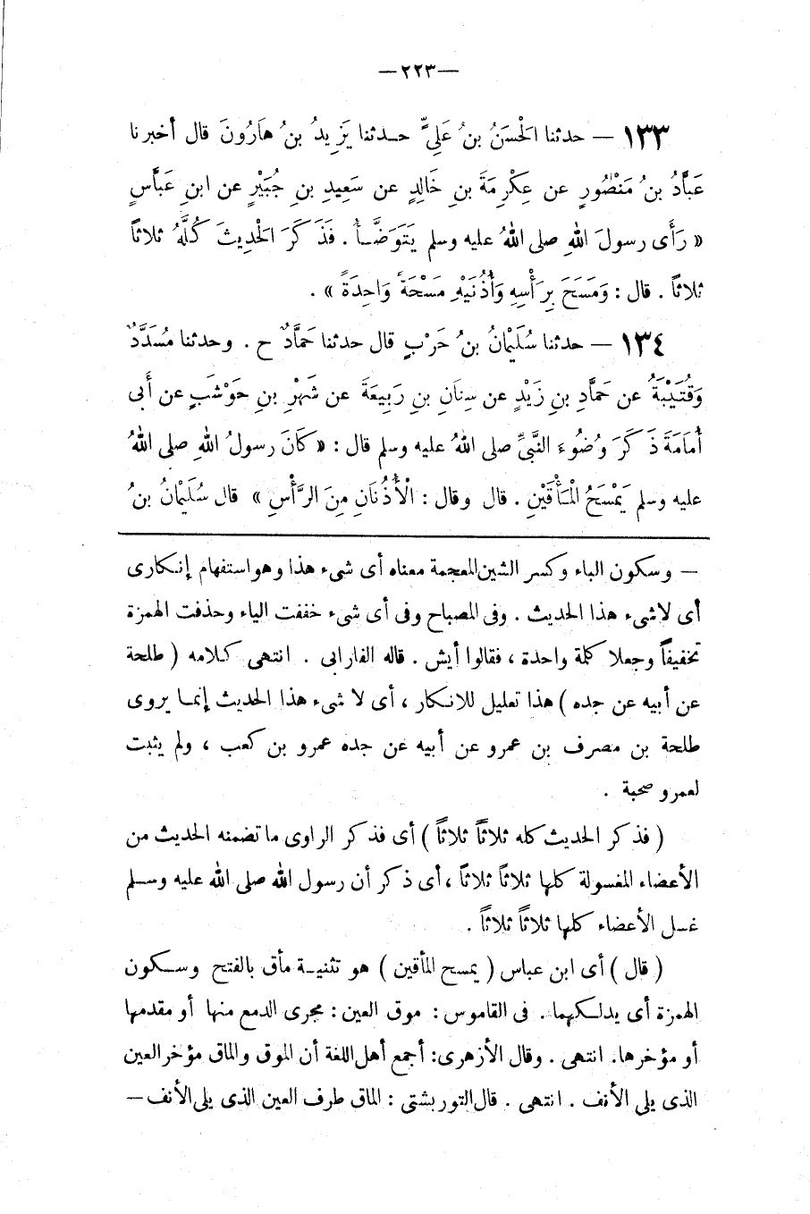 ( فَذَكَرَ الْحَدِيث كُلّه ثَلَاثًا ثَلَاثًا )
