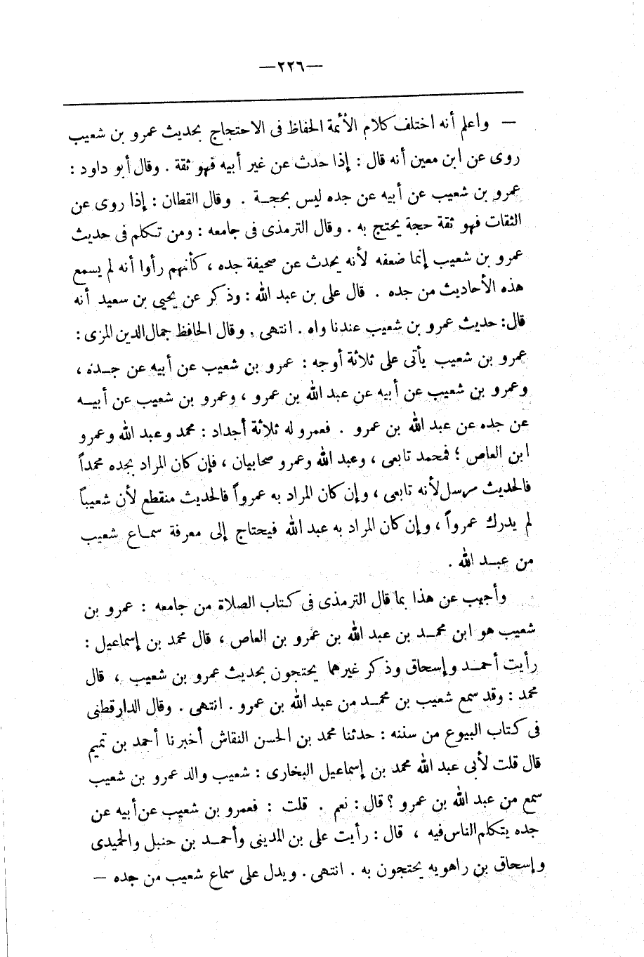 قُلْت : فَعَمْرو بْن شُعَيْب عَنْ أَبِيهِ عَنْ جَدّه يَتَكَلَّم النَّاس فِيهِ ، قَالَ : رَأَيْت عَلِيّ بْن الْمَدِينِيّ وَأَحْمَد بْن حَنْبَل وَالْحُمَيْدِيّ وَإِسْحَاق بْن رَاهْوَيْهِ يَحْتَجُّونَ بِهِ .