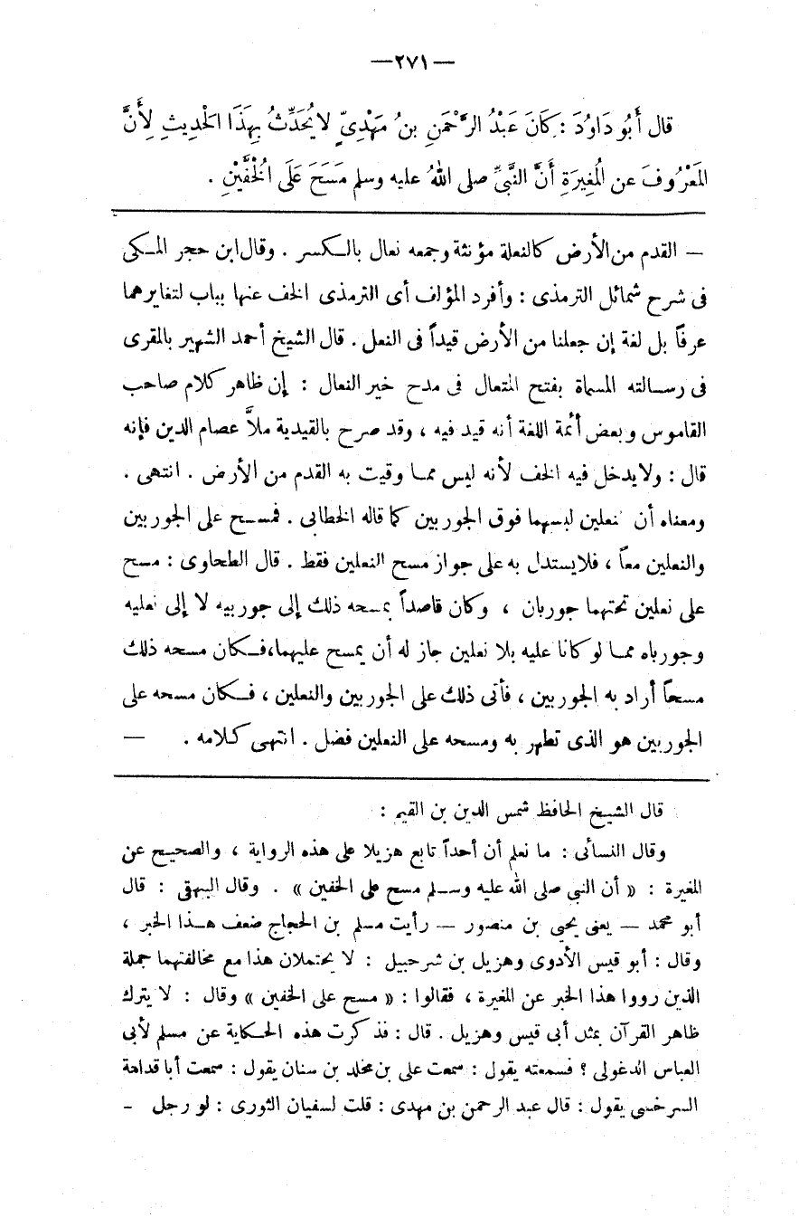 قال الشيخ الحافظ شمس الدين بن القيم وقال النسائي ما نعلم أن أحدا تابع هزيلا على هذه الرواية والصحيح عن المغيرة أن النبي صلى الله عليه و سلم مسح على الخفين