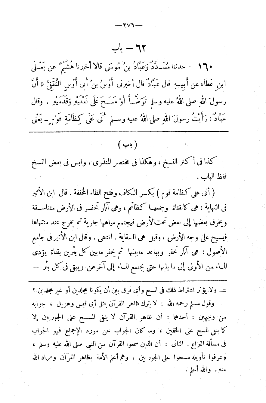 ولا يؤثر اشتراط ذلك في المسح وأي فرق بين أن يكونا مجلدين أو غير مجلدين وقول مسلم رحمه الله لا يترك ظاهر القرآن بمثل أبي قيس وهزيل جوابه من وجهين أحدهما أن ظاهر القرآن لا ينفي المسح على الجوربين إلا كما ينفي المسح على الخفين وما كان الجواب عن مورد الإجماع فهو الجواب في مسألة النزاع