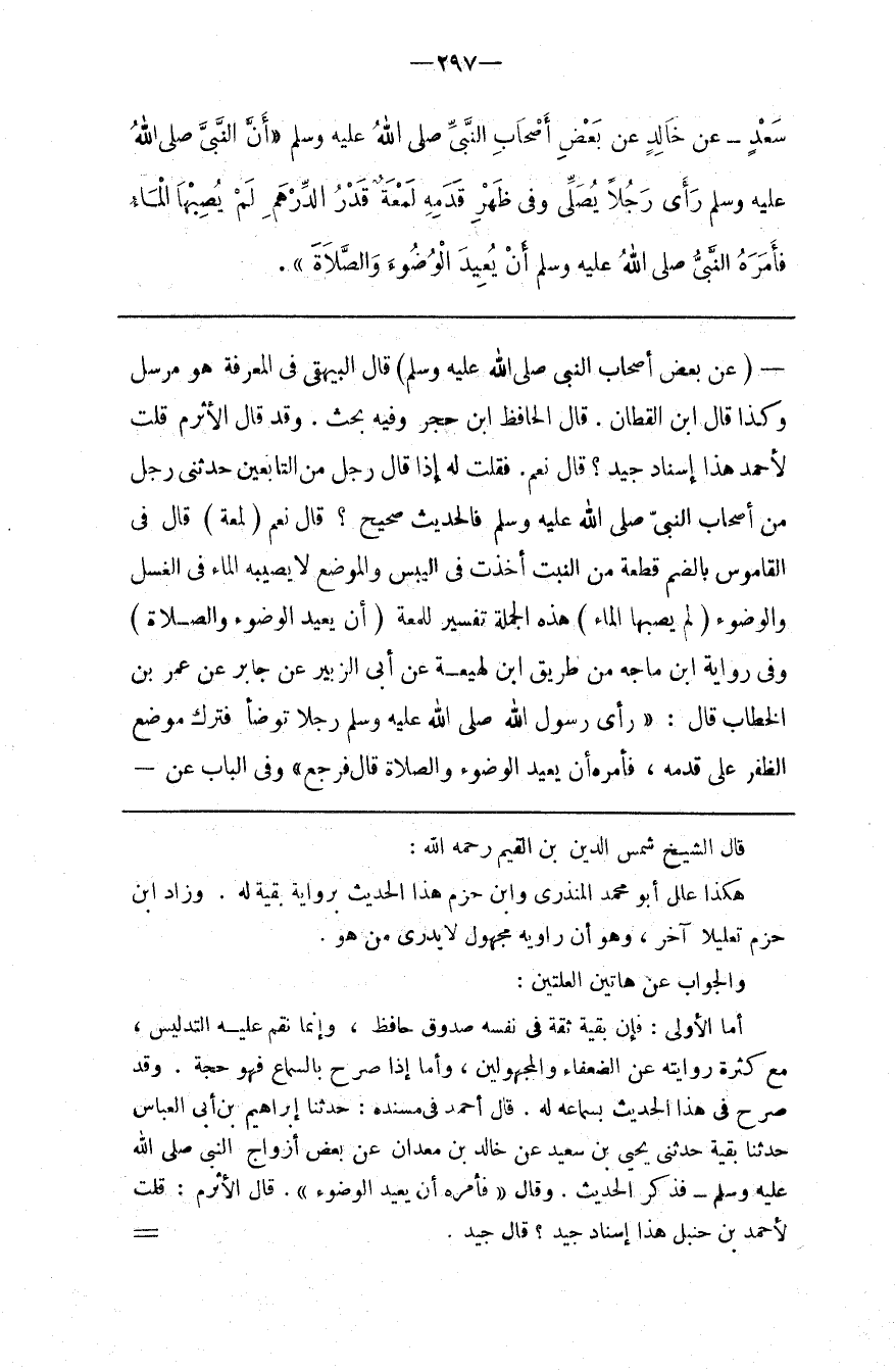 قال الشيخ شمس الدين بن القيم رحمه الله هكذا علل أبو محمد المنذري وابن حزم هذا الحديث برواية بقية له