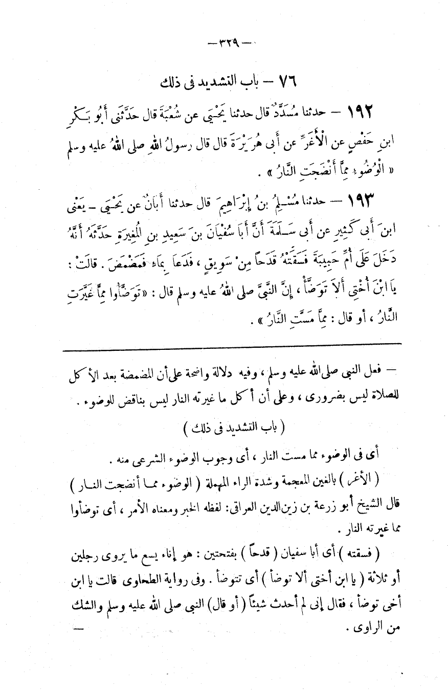 : قَالَ الشَّيْخ أَبُو زُرْعَة بْن زَيْن الدِّين الْعِرَاقِيّ : لَفْظه الْخَبَر وَمَعْنَاهُ الْأَمْر ، أَيْ تَوَضَّئُوا مِمَّا غَيَّرَتْهُ النَّار .