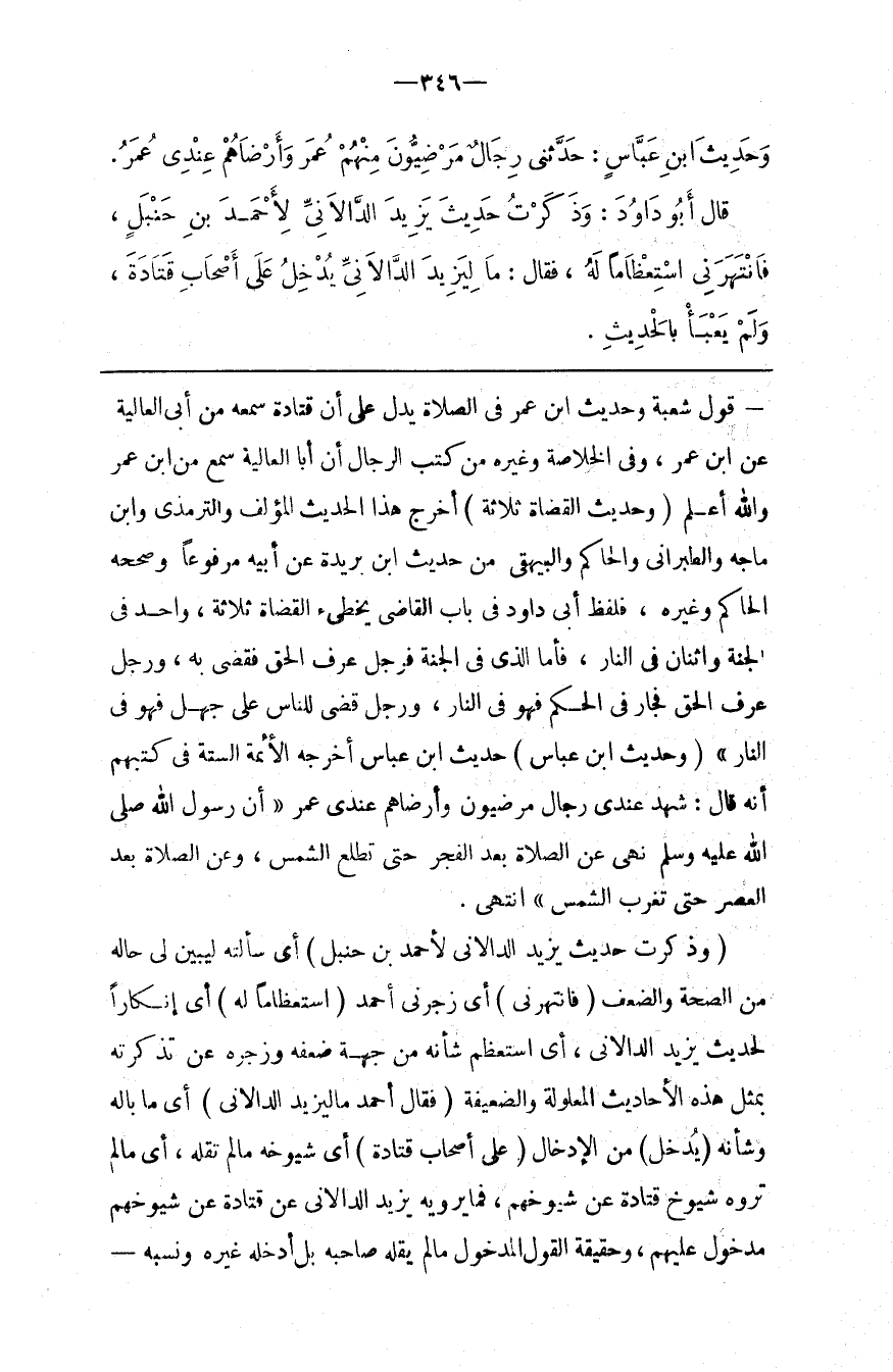 : حَدِيث اِبْن عَبَّاس أَخْرَجَهُ الْأَئِمَّة السِّتَّة فِي كُتُبهمْ أَنَّهُ قَالَ : شَهِدَ عِنْدِي رِجَال مَرْضِيُّونَ وَأَرْضَاهُمْ عِنْدِي عُمَر " أَنَّ رَسُول اللَّه صَلَّى اللَّه عَلَيْهِ وَسَلَّمَ نَهَى عَنْ الصَّلَاة بَعْد الْفَجْر حَتَّى تَطْلُع الشَّمْس ، وَعَنْ الصَّلَاة بَعْد الْعَصْر حَتَّى تَغْرُب الشَّمْس " اِنْتَهَى .