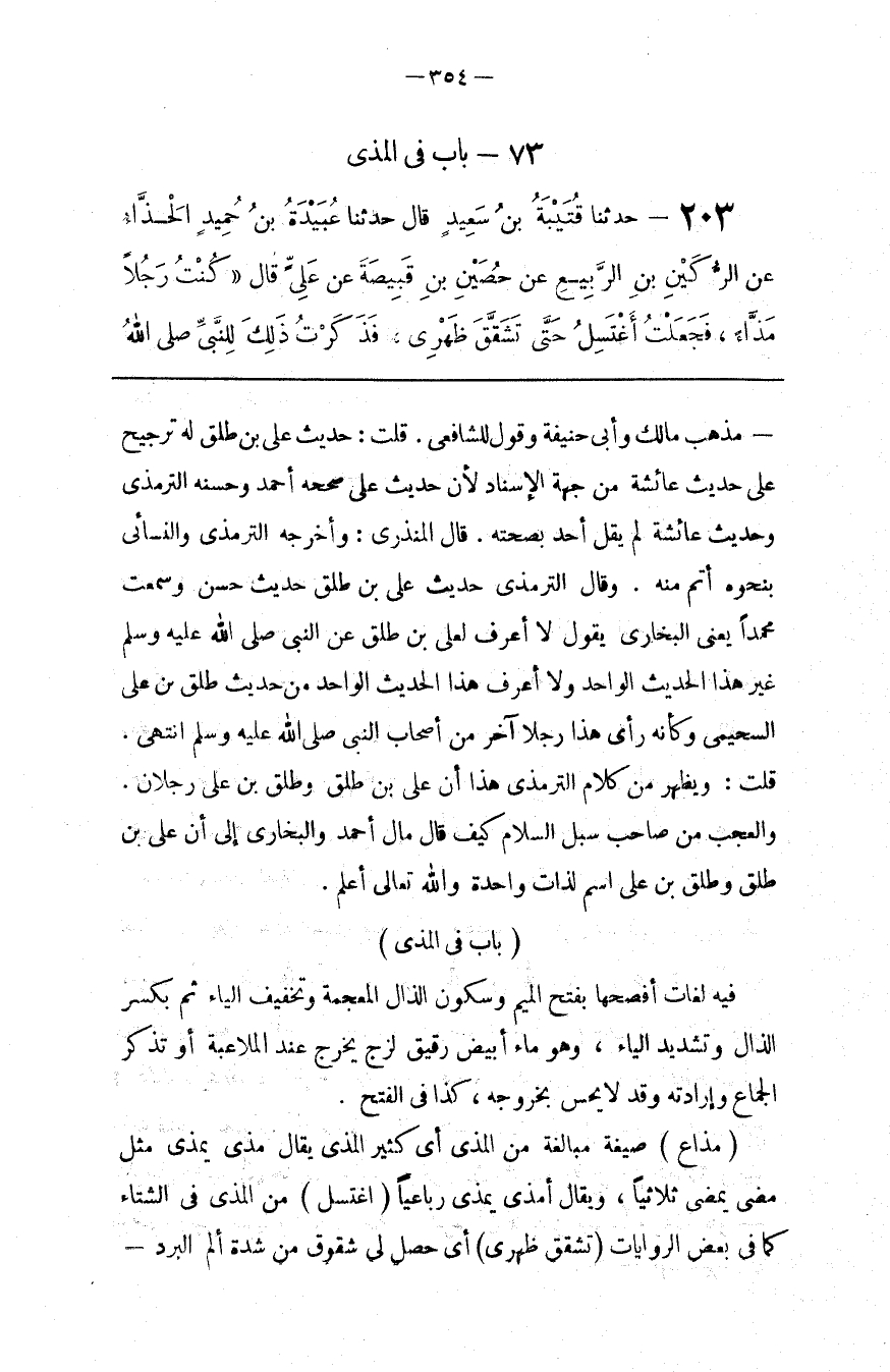 قُلْت : وَيَظْهَر مِنْ كَلَام التِّرْمِذِيّ هَذَا أَنَّ عَلِيّ بْن طَلْق وَطَلْق بْن عَلِيّ رَجُلَانِ . وَالْعَجَب مِنْ صَاحِب سُبُل السَّلَام كَيْف قَالَ مَالَ أَحْمَد وَالْبُخَارِيّ إِلَى أَنَّ عَلِيّ بْن طَلْق وَطَلْق بْن عَلِيّ اِسْم لِذَاتٍ وَاحِدَة وَاَللَّه تَعَالَى أَعْلَم .