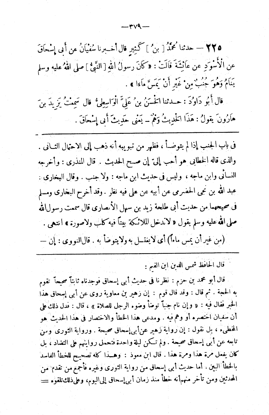 ثم قال وقد قال قوم إن زهير بن معاوية روى عن أبي إسحاق هذا الخبر فقال فيه وإن نام جنبا توضأ وضوء