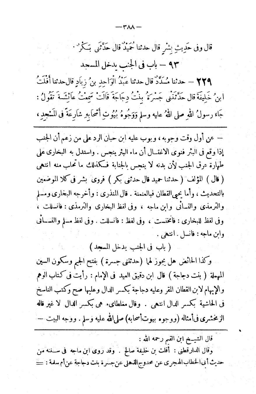 وقد روى ابن ماجه في سننه من حديث أبي الخطاب الهجري عن محدوج الذهلي عن جسرة بنت دجاجة عن أم سلمة