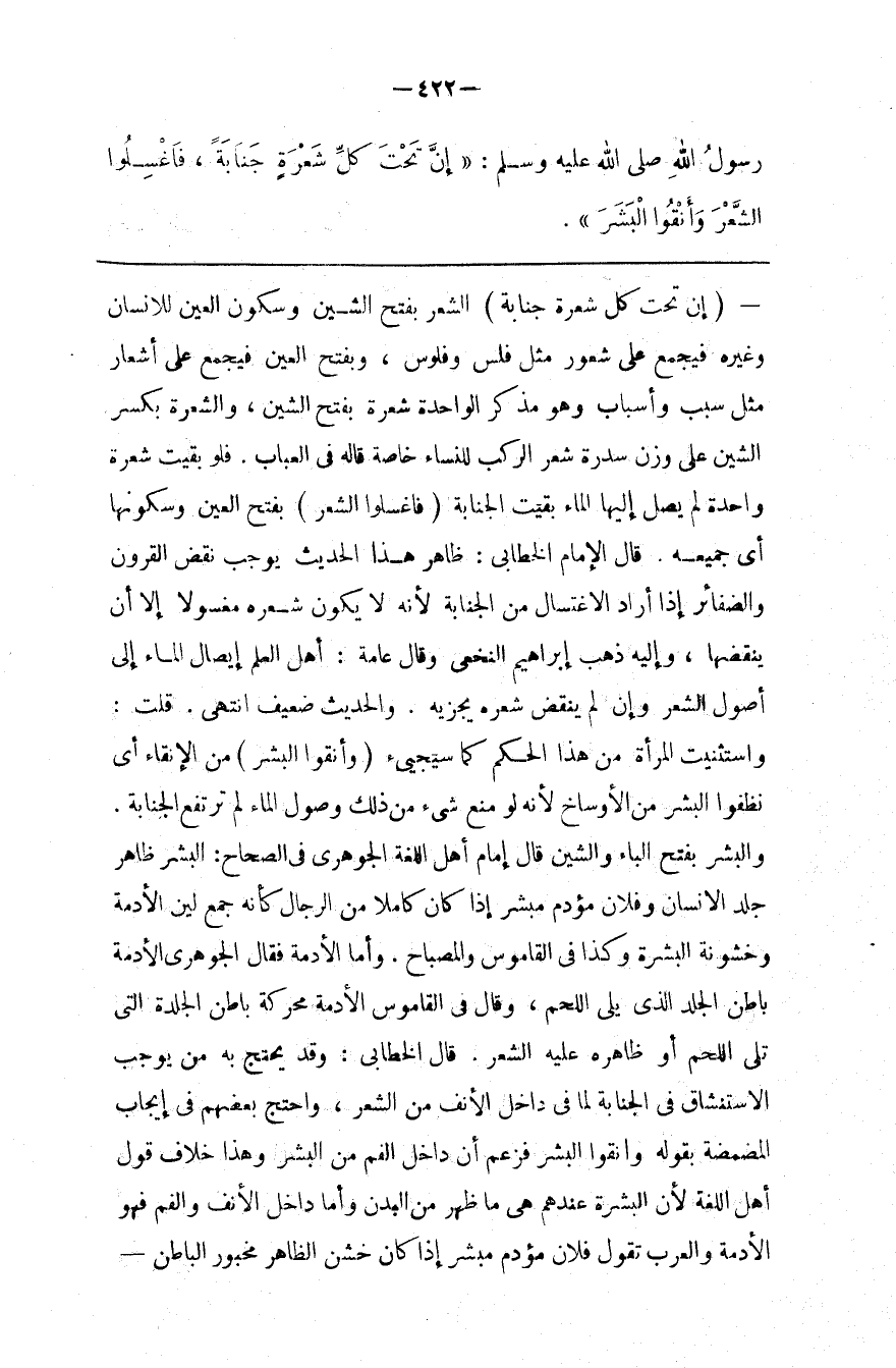 ( إِنَّ تَحْت كُلّ شَعْرَة جَنَابَة )
