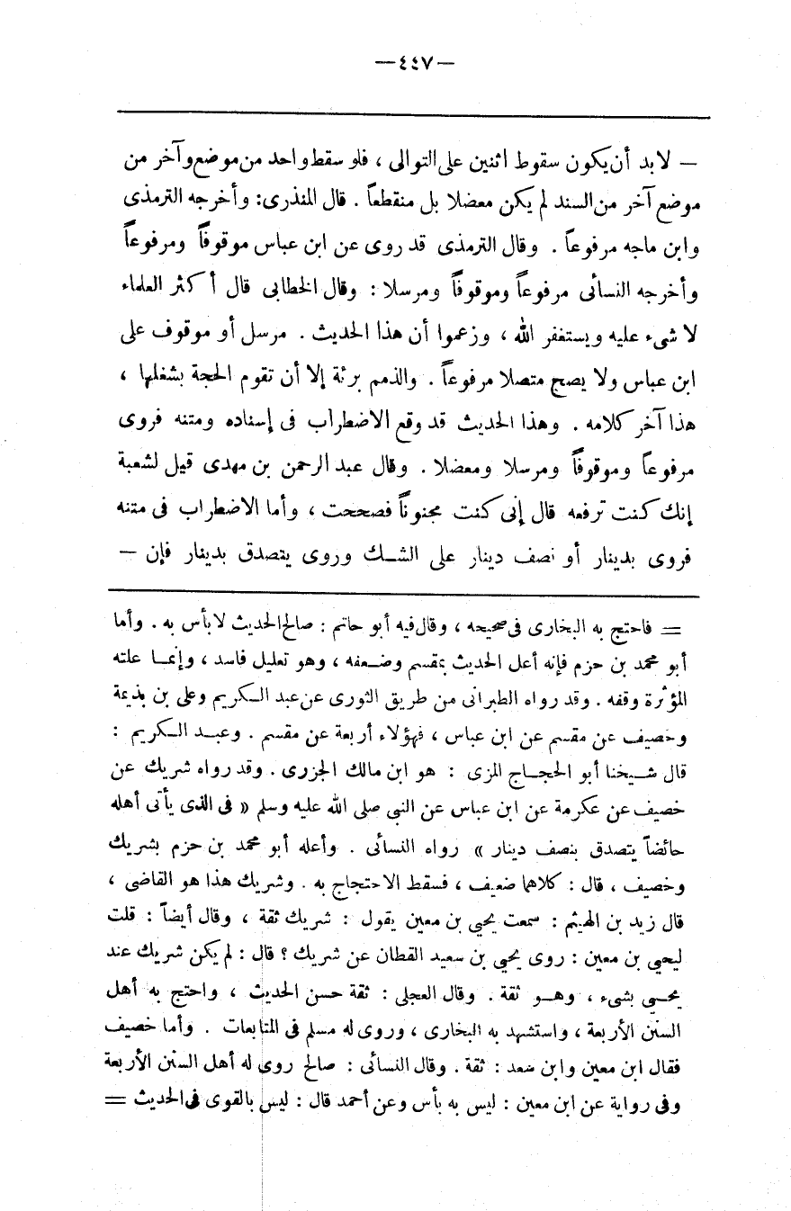 وأعله أبو محمد بن حزم بشريك وخصيف