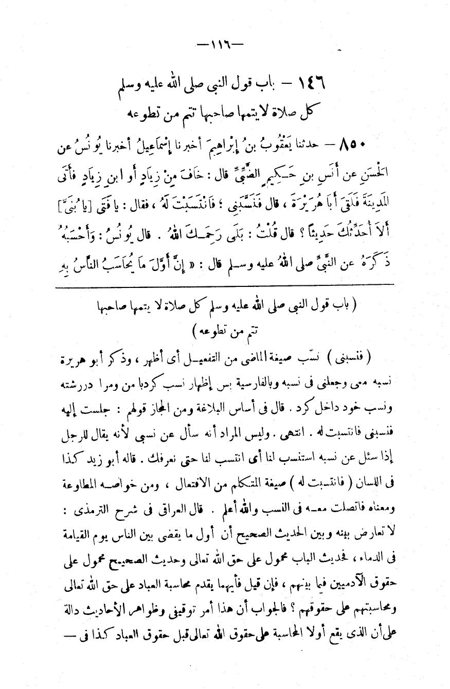 : صِيغَة الْمُتَكَلِّم مِنْ الِافْتِعَال ، وَمِنْ خَوَاصّه الْمُطَاوَعَة وَمَعْنَاهُ فَاتَّصَلْت مَعَهُ فِي النَّسَب وَاَللَّه أَعْلَم . قَالَ الْعِرَاقِيّ فِي شَرْح التِّرْمِذِيّ : لَا تَعَارُض بَيْنه وَبَيْن الْحَدِيث الصَّحِيح أَنَّ أَوَّل مَا يُقْضَى بَيْن النَّاس يَوْم الْقِيَامَة فِي الدِّمَاء ، فَحَدِيث الْبَاب مَحْمُول عَلَى حَقّ اللَّه تَعَالَى وَحَدِيث الصَّحِيح مَحْمُول عَلَى حُقُوق الْآدَمِيِّينَ فِيمَا بَيْنهمْ ، فَإِنْ قِيلَ فَأَيّهمَا يُقَدَّم مُحَاسَبَة الْعِبَاد عَلَى حَقّ اللَّه تَعَالَى وَمُحَاسَبَتهمْ عَلَى حُقُوقهمْ ؟ فَالْجَوَاب أَنَّ هَذَا أَمْر تَوْقِيفِيّ وَظَوَاهِر الْأَحَادِيث دَالَّة عَلَى أَنَّ الَّذِي يَقَع أَوَّلًا الْمُحَاسَبَة عَلَى حُقُوق اللَّه تَعَالَى قَبْل حُقُوق الْعِبَاد كَذَا فِي@