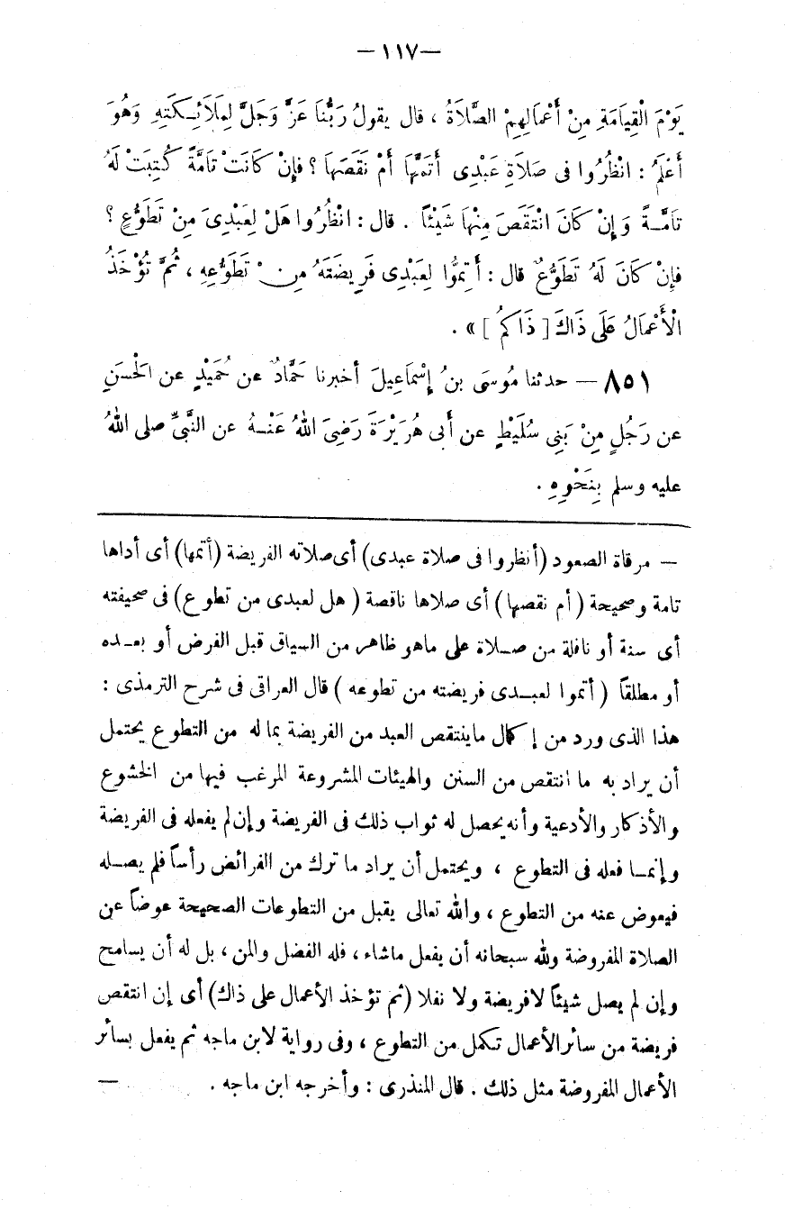 : قَالَ الْعِرَاقِيّ فِي شَرْح التِّرْمِذِيّ : هَذَا الَّذِي وَرَدَ مِنْ إِكْمَال مَا يُنْتَقَص الْعَبْد مِنْ الْفَرِيضَة بِمَا لَهُ مِنْ التَّطَوُّع يَحْتَمِل أَنْ يُرَاد بِهِ مَا اِنْتَقَصَ مِنْ السُّنَن وَالْهَيْئَات الْمَشْرُوعَة الْمُرَغَّب فِيهَا مِنْ الْخُشُوع وَالْأَذْكَار وَالْأَدْعِيَة وَأَنَّهُ يَحْصُل لَهُ ثَوَاب ذَلِكَ فِي الْفَرِيضَة وَإِنْ لَمْ يَفْعَلهُ فِي الْفَرِيضَة وَإِنَّمَا فَعَلَهُ فِي التَّطَوُّع ، وَيَحْتَمِل أَنْ يُرَاد مَا تَرَكَ مِنْ الْفَرَائِض رَأْسًا فَلَمْ يُصَلِّهِ فَيُعَوَّض عَنْهُ مِنْ التَّطَوُّع ، وَاَللَّه تَعَالَى يَقْبَل مِنْ التَّطَوُّعَات الصَّحِيحَة عِوَضًا عَنْ الصَّلَاة الْمَفْرُوضَة وَلِلَّهِ سُبْحَانه أَنْ يَفْعَل مَا شَاءَ ، فَلَهُ الْفَضْل وَالْمَنّ ، بَلْ لَهُ أَنْ يُسَامِح وَإِنْ لَمْ يُصَلِّ شَيْئًا لَا فَرِيضَة وَلَا نَفْلًا