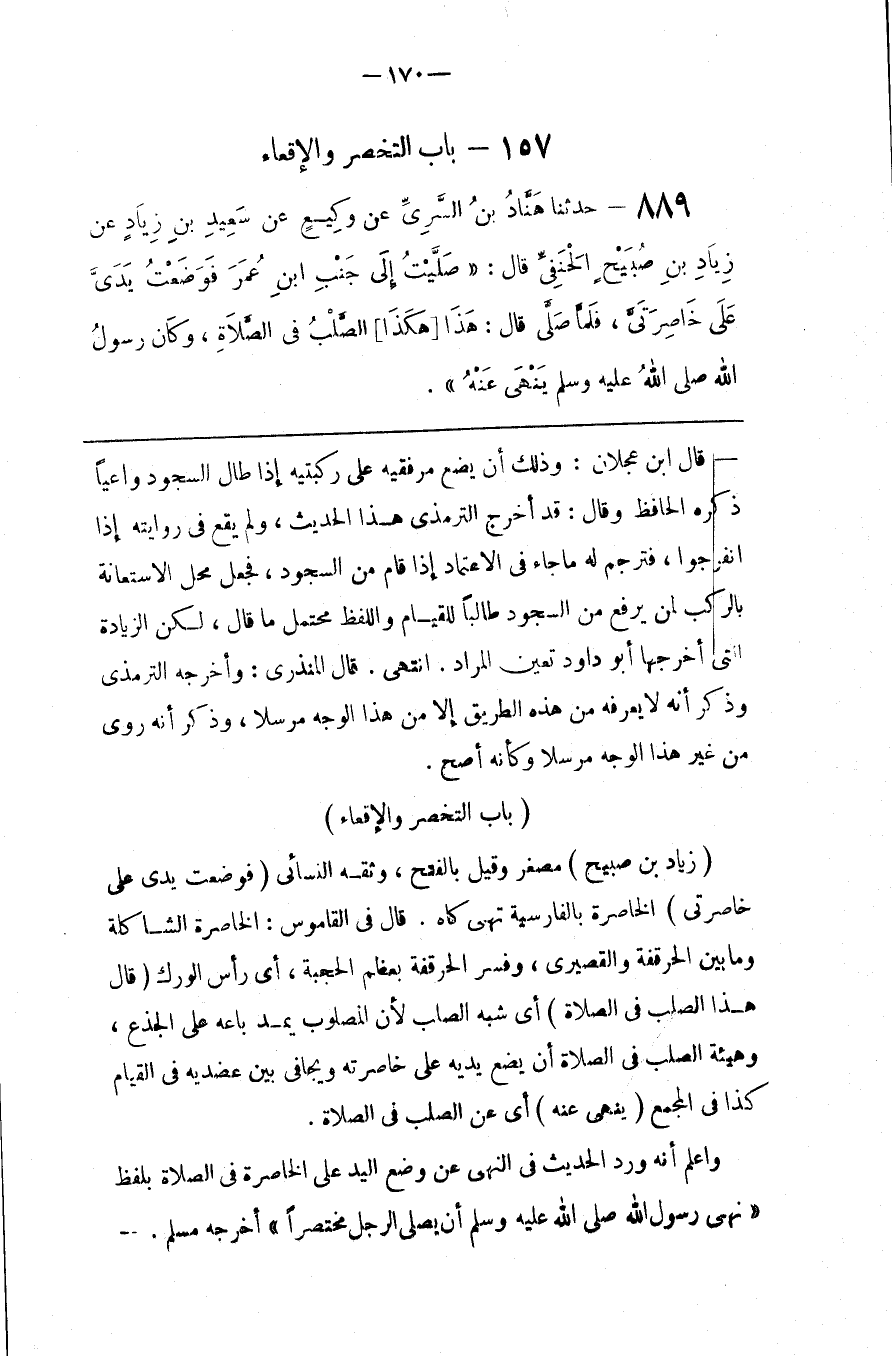 وَاعْلَمْ أَنَّهُ وَرَدَ الْحَدِيث فِي النَّهْي عَنْ وَضْع الْيَد عَلَى الْخَاصِرَة فِي الصَّلَاة بِلَفْظِ " نَهَى رَسُول اللَّه صَلَّى اللَّه عَلَيْهِ وَسَلَّمَ أَنْ يُصَلِّي الرَّجُل مُخْتَصِرًا " أَخْرَجَهُ مُسْلِم .@