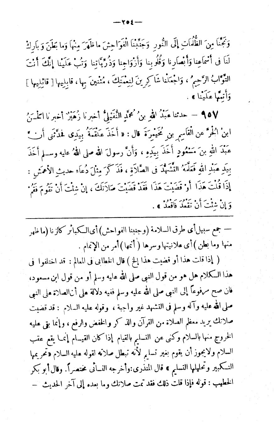 إِلَخْ : قَالَ الْخَطَّابِيُّ فِي الْمَعَالِم : قَدْ اِخْتَلَفُوا فِي هَذَا الْكَلَام هَلْ هُوَ مِنْ قَوْل النَّبِيّ صَلَّى اللَّه عَلَيْهِ وَسَلَّمَ أَوْ مِنْ قَوْل اِبْن مَسْعُود ، فَإِنْ صَحَّ مَرْفُوعًا إِلَى النَّبِيّ صَلَّى اللَّه عَلَيْهِ وَسَلَّمَ فَفِيهِ دَلَالَة عَلَى أَنَّ الصَّلَاة عَلَى النَّبِيّ صَلَّى اللَّه عَلَيْهِ وَسَلَّمَ فِي التَّشَهُّد غَيْر وَاجِبَة ، وَقَوْله عَلَيْهِ السَّلَام : قَدْ قَضَيْت صَلَاتك يُرِيد مُعْظَم الصَّلَاة مِنْ الْقُرْآن وَالذِّكْر وَالْخَفْض وَالرَّفْع ، وَإِنَّمَا بَقِيَ عَلَيْهِ الْخُرُوج مِنْهَا بِالسَّلَامِ وَكَنَّى عَنْ التَّسْلِيم بِالْقِيَامِ إِذَا كَانَ الْقِيَام إِنَّمَا يَقَع عَقِب السَّلَام وَلَا يَجُوز أَنْ يَقُوم بِغَيْرِ تَسْلِيم لِأَنَّهُ تَبْطُل صَلَاته لِقَوْلِهِ عَلَيْهِ السَّلَام " تَحْرِيمهَا التَّكْبِير وَتَحْلِيلهَا التَّسْلِيم " قَالَ الْمُنْذِرِيُّ : وَأَخْرَجَهُ النَّسَائِيُّ مُخْتَصَرًا . وَقَالَ أَبُو بَكْر الْخَطِيب : قَوْله فَإِذَا قُلْت ذَلِكَ فَقَدْ تَمَّتْ صَلَاتك وَمَا بَعْده إِلَى آخِر الْحَدِيث@