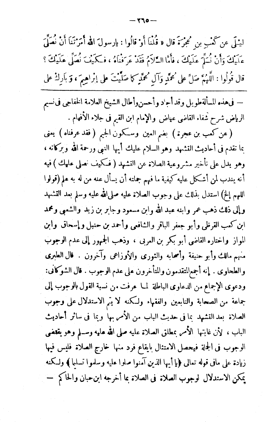 إِلَخْ : اُسْتُدِلَّ بِذَلِكَ عَلَى وُجُوب الصَّلَاة عَلَيْهِ صَلَّى اللَّه عَلَيْهِ وَسَلَّمَ بَعْد التَّشَهُّد وَإِلَى ذَلِكَ ذَهَبَ عُمَر وَابْنه عَبْد اللَّه وَابْن مَسْعُود وَجَابِر بْن زَيْد وَالشَّعْبِيّ وَمُحَمَّد بْن كَعْب الْقُرَظِيّ وَأَبُو جَعْفَر الْبَاقِر وَالشَّافِعِيّ وَأَحْمَد بْن حَنْبَل وَإِسْحَاق وَابْن الْمَوَّاز وَاخْتَارَهُ الْقَاضِي أَبُو بَكْر بْن الْعَرَبِيّ ، وَذَهَبَ الْجُمْهُور إِلَى عَدَم الْوُجُوب مِنْهُمْ مَالِك وَأَبُو حَنِيفَة وَأَصْحَابه وَالثَّوْرِيُّ وَالْأَوْزَاعِيُّ وَآخَرُونَ . قَالَ الطَّبَرِيُّ وَالطَّحَاوِيّ : إِنَّهُ أَجْمَعَ الْمُتَقَدِّمُونَ وَالْمُتَأَخِّرُونَ عَلَى عَدَمِ الْوُجُوب . قَالَ الشَّوْكَانِيُّ : وَدَعْوَى الْإِجْمَاع مِنْ الدَّعَاوَى الْبَاطِلَة لِمَا عَرَفْت مِنْ نِسْبَة الْقَوْل بِالْوُجُوبِ إِلَى جَمَاعَة مِنْ الصَّحَابَة وَالتَّابِعِينَ وَالْفُقَهَاء وَلَكِنَّهُ لَا يَتِمّ الِاسْتِدْلَال عَلَى وُجُوب الصَّلَاة بَعْد التَّشَهُّد بِمَا فِي حَدِيث الْبَاب مِنْ الْأَمْر بِهَا وَبِمَا فِي سَائِر أَحَادِيث الْبَاب ، لِأَنَّ غَايَتهَا الْأَمْر بِمُطْلَقِ الصَّلَاة عَلَيْهِ صَلَّى اللَّه عَلَيْهِ وَسَلَّمَ وَهُوَ يَقْتَضِي الْوُجُوب فِي الْجُمْلَة فَيَحْصُلُ الِامْتِثَال بِإِيقَاعِ فَرْد مِنْهَا خَارِج الصَّلَاة فَلَيْسَ فِيهَا زِيَادَة عَلَى مَا فِي قَوْله تَعَالَى { يَا أَيُّهَا الَّذِينَ آمَنُوا صَلُّوا عَلَيْهِ وَسَلِّمُوا تَسْلِيمًا } وَلَكِنَّهُ يُمْكِن الِاسْتِدْلَال لِوُجُوبِ الصَّلَاة فِي الصَّلَاة بِمَا أَخْرَجَهُ اِبْن حِبَّان وَالْحَاكِم @