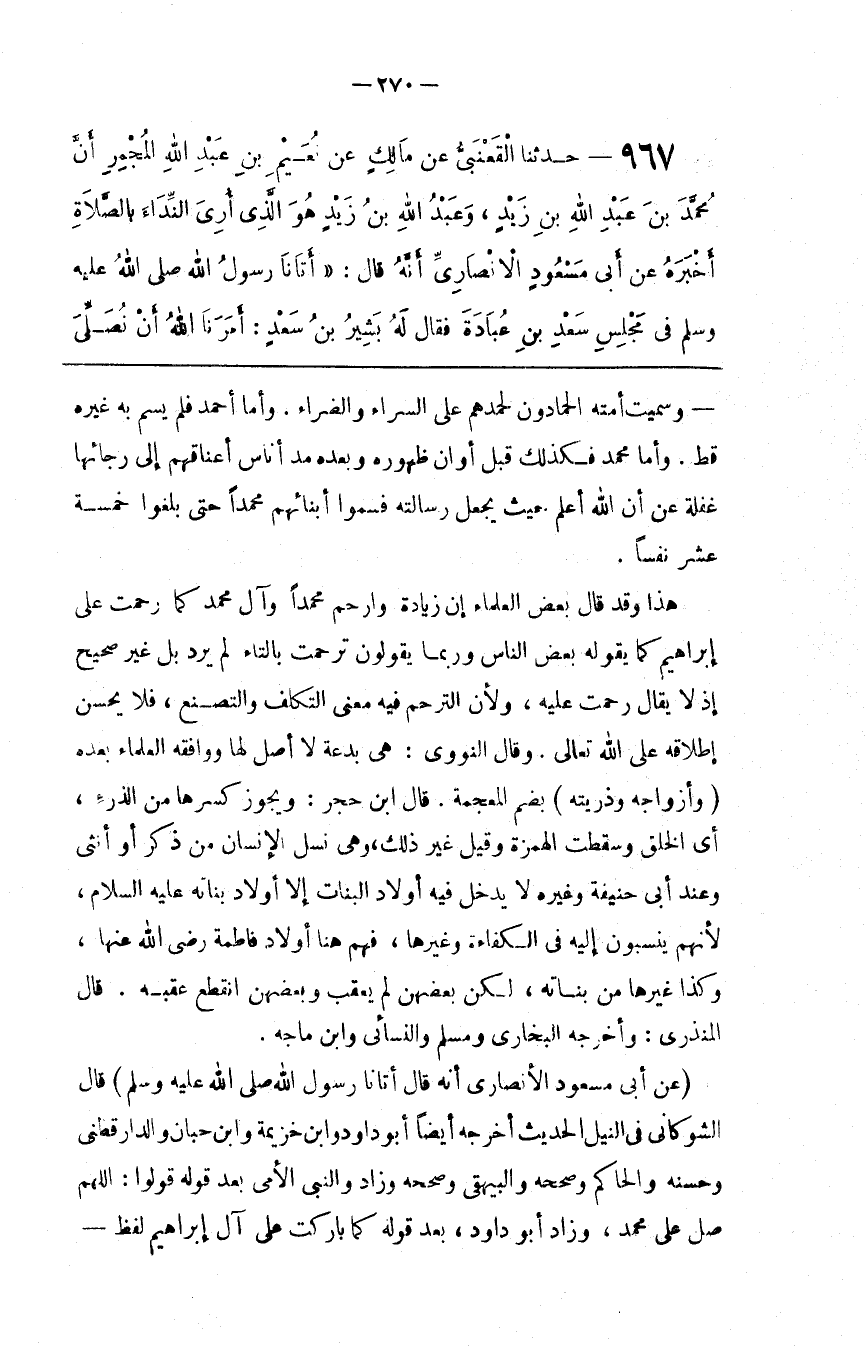 : قَالَ الشَّوْكَانِيُّ فِي النَّيْل الْحَدِيث أَخْرَجَهُ أَيْضًا أَبُو دَاوُدَ وَابْن خُزَيْمَةَ وَابْن حِبَّان وَالدَّارَقُطْنِيّ وَحَسَّنَهُ وَالْحَاكِم وَصَحَّحَهُ وَالْبَيْهَقِيُّ وَصَحَّحَهُ وَزَادَ وَالنَّبِيّ الْأُمِّيّ بَعْد قَوْله قَالُوا : اللَّهُمَّ صَلِّ عَلَى مُحَمَّد ، وَزَادَ أَبُو دَاوُدَ ، بَعْد قَوْله كَمَا بَارَكْت عَلَى آلِ إِبْرَاهِيم لَفْظ @