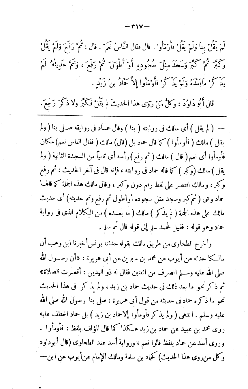 : كَمَا قَالَهُ حَمَّاد فِي رِوَايَته ، فَإِنَّهُ قَالَ فِي آخِر الْحَدِيث : ثُمَّ رَفَعَ وَكَبَّرَ ، وَمَالِك اِقْتَصَرَ عَلَى لَفْظ رَفَعَ دُون وَكَبَّرَ ، وَقَالَ مَالِك هَذِهِ الْجُمْلَة كَمَا قَالَهَا حَمَّاد وَهِيَ