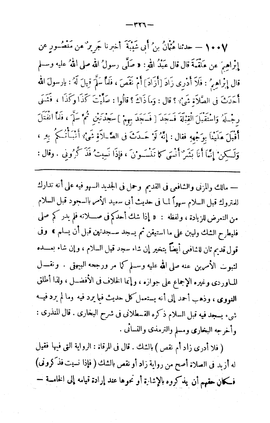 : بِالشَّكِّ . قَالَ فِي الْمِرْقَاة : الرِّوَايَة الَّتِي فِيهَا فَقِيلَ لَهُ أَزِيد فِي الصَّلَاة مِنْ رِوَايَة زَادَ أَوْ نَقَصَ بِالشَّكِّ