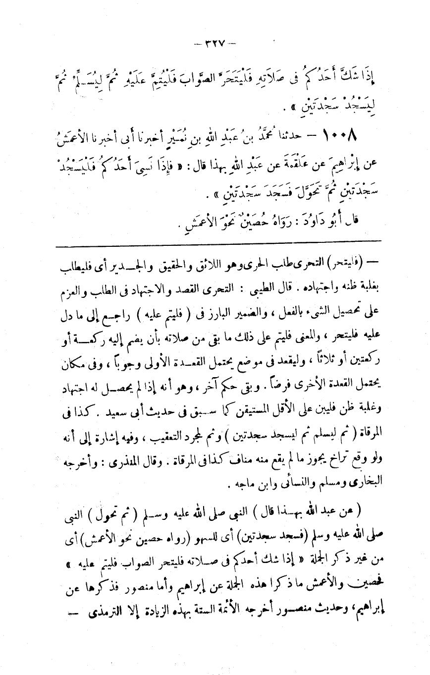 : أَيْ مِنْ غَيْر ذِكْر الْجُمْلَة " إِذَا شَكَّ أَحَدكُمْ فِي صَلَاته فَلْيَتَحَرَّ الصَّوَاب فَلْيُتِمَّ عَلَيْهِ " فَحُصَيْن وَالْأَعْمَش مَا ذَكَرَا هَذِهِ الْجُمْلَة عَنْ إِبْرَاهِيم وَأَمَّا مَنْصُور فَذَكَرَهَا عَنْ إِبْرَاهِيم ، وَحَدِيث مَنْصُور أَخْرَجَهُ الْأَئِمَّة السِّتَّة بِهَذِهِ الزِّيَادَة إِلَّا التِّرْمِذِيّ@