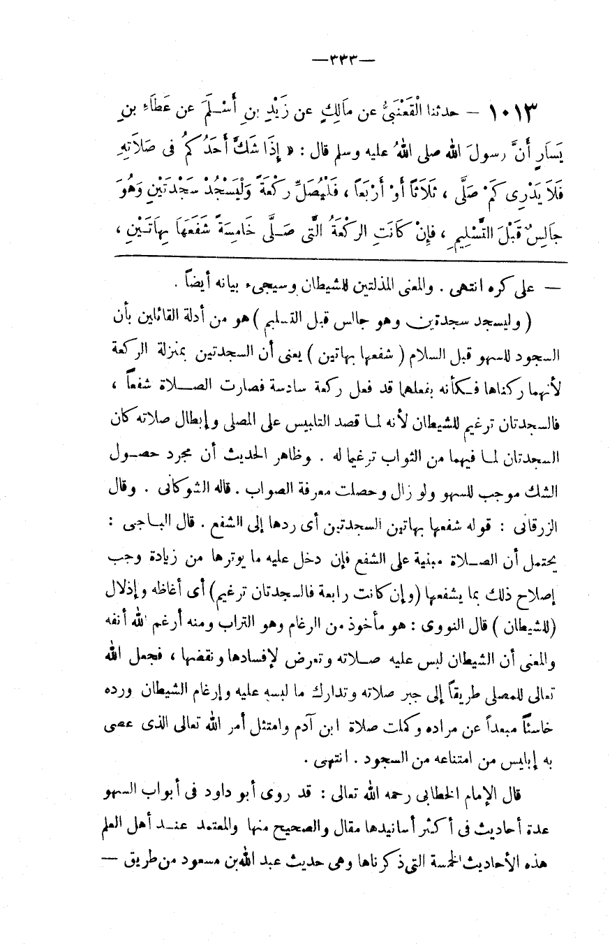 قَالَ الْإِمَام الْخَطَّابِيُّ رَحِمَهُ اللَّه تَعَالَى : قَدْ رَوَى أَبُو دَاوُدَ فِي أَبْوَاب السَّهْو عِدَّة أَحَادِيث فِي أَكْثَر أَسَانِيدهَا مَقَالٌ وَالصَّحِيحُ مِنْهَا وَالْمُعْتَمَدُ عِنْد أَهْل الْعِلْم هَذِهِ الْأَحَادِيث الْخَمْسَة الَّتِي ذَكَرْنَاهَا وَهِيَ حَدِيث عَبْد اللَّه بْن مَسْعُود مِنْ طَرِيق @