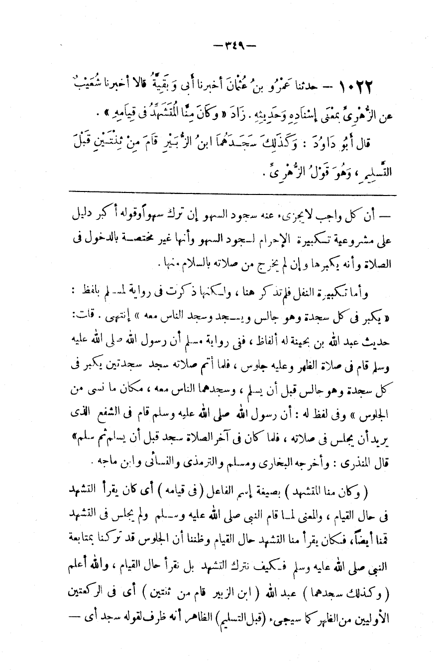 وَأَمَّا تَكْبِيرَة النَّفْل فَلَمْ تُذْكَر هُنَا ، وَلَكِنَّهَا ذُكِرَتْ فِي رِوَايَة لِمُسْلِمٍ بِلَفْظِ : " يُكَبِّر فِي كُلّ سَجْدَة وَهُوَ جَالِس وَيَسْجُد وَسَجَدَ النَّاس مَعَهُ " . اِنْتَهَى قُلْت : حَدِيث عَبْد اللَّه ابْن بُحَيْنَة لَهُ أَلْفَاظ ، فَفِي رِوَايَة مُسْلِم أَنَّ رَسُول اللَّه صَلَّى اللَّه عَلَيْهِ وَسَلَّمَ قَامَ فِي صَلَاة الظُّهْر وَعَلَيْهِ جُلُوس ، فَلَمَّا أَتَمَّ صَلَاته سَجَدَ سَجْدَتَيْنِ يُكَبِّر فِي كُلّ سَجْدَة وَهُوَ جَالِس قَبْل أَنْ يُسَلِّم ، وَسَجَدَهُمَا النَّاس مَعَهُ ، مَكَان مَا نَسِيَ مِنْ الْجُلُوس . وَفِي لَفْظ لَهُ : " أَنَّ رَسُول اللَّه صَلَّى اللَّه عَلَيْهِ وَسَلَّمَ قَامَ فِي الشَّفْع الَّذِي يُرِيد أَنْ يَجْلِس فِي صَلَاته ، فَلَمَّا كَانَ فِي آخِر الصَّلَاة سَجَدَ قَبْل أَنْ يُسَلِّم ثُمَّ سَلَّمَ " . قَالَ الْمُنْذِرِيُّ : وَأَخْرَجَهُ الْبُخَارِيّ وَمُسْلِم وَالتِّرْمِذِيّ وَالنَّسَائِيُّ وَابْن مَاجَهْ .