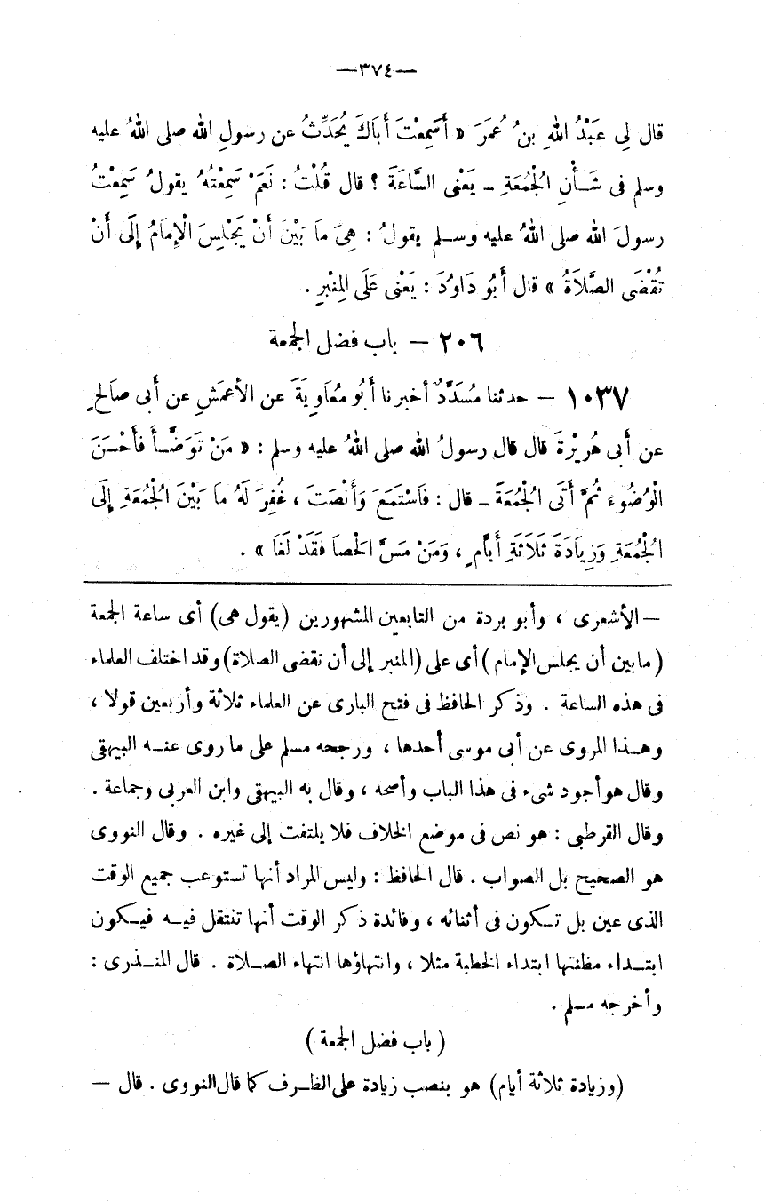 : وَقَدْ اِخْتَلَفَ الْعُلَمَاء فِي هَذِهِ السَّاعَة . وَذَكَرَ الْحَافِظ فِي فَتْح الْبَارِي عَنْ الْعُلَمَاء ثَلَاثَة وَأَرْبَعِينَ قَوْلًا ، وَهَذَا الْمَرْوِيّ عَنْ أَبِي مُوسَى أَحَدهَا ، وَرَجَّحَهُ مُسْلِم عَلَى مَا رَوَى عَنْهُ الْبَيْهَقِيُّ وَقَالَ هُوَ أَجْوَد شَيْء فِي هَذَا الْبَاب وَأَصَحُّهُ ، وَقَالَ بِهِ الْبَيْهَقِيُّ وَابْن الْعَرَبِيّ وَجَمَاعَةٌ . وَقَالَ الْقُرْطُبِيّ : هُوَ نَصٌّ فِي مَوْضِع الْخِلَاف فَلَا يُلْتَفَتُ إِلَى غَيْره . وَقَالَ النَّوَوِيُّ هُوَ الصَّحِيحُ بَلْ الصَّوَابُ . قَالَ الْحَافِظ : وَلَيْسَ الْمُرَاد أَنَّهَا تَسْتَوْعِب جَمِيع الْوَقْت الَّذِي عَيَّنَ بَلْ تَكُون فِي أَثْنَائِهِ ، وَفَائِدَة ذِكْر الْوَقْت أَنَّهَا تَنْتَقِل فِيهِ فَيَكُون اِبْتِدَاء مَظِنَّتهَا اِبْتِدَاء الْخُطْبَة مَثَلًا ، وَانْتِهَاؤُهَا اِنْتِهَاءُ الصَّلَاة .