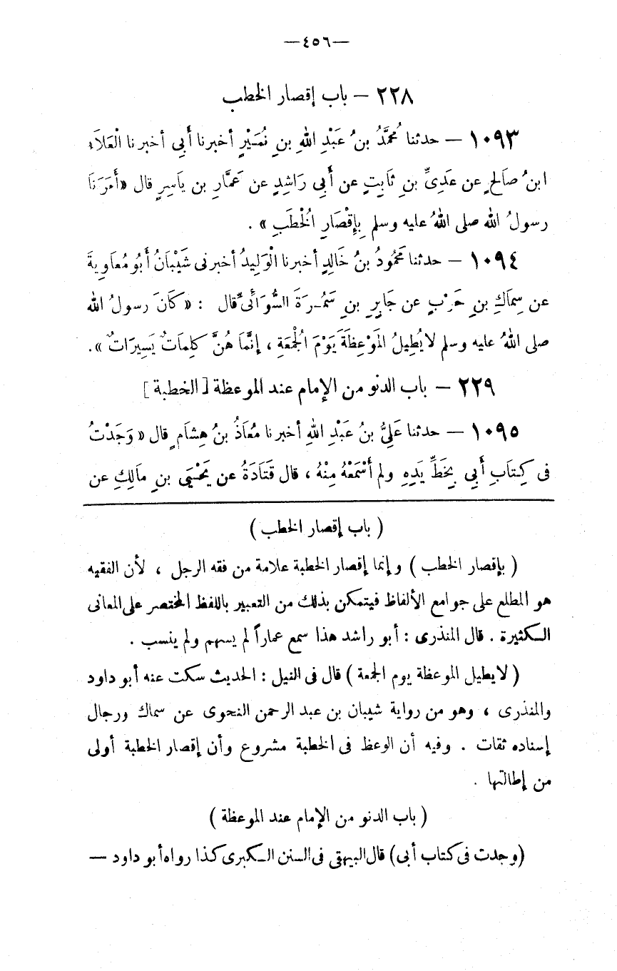 ( بِإِقْصَارِ الْخُطَب )