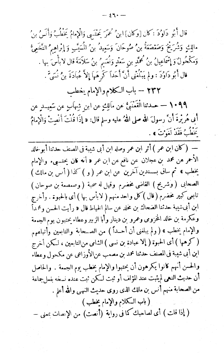 : أَثَر اِبْن عُمَر وَصَلَهُ اِبْن أَبِي شَيْبَة فِي الْمُصَنَّف حَدَّثَنَا أَبُو خَالِد الْأَحْمَر عَنْ مُحَمَّد بْن عَجْلَان عَنْ نَافِع عَنْ اِبْن عُمَر " أَنَّهُ كَانَ يَحْتَبِي وَالْإِمَام يَخْطُب " ثُمَّ سَاقَ بِسَنَدَيْنِ آخَرَيْنِ عَنْ اِبْن عُمَر