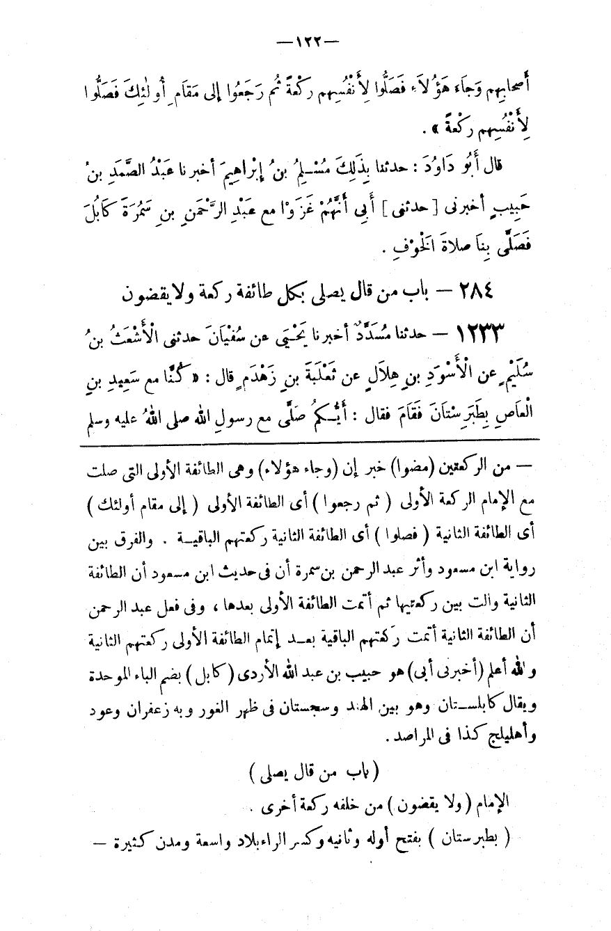 : أَيْ الطَّائِفَة الثَّانِيَة رَكْعَتهمْ الْبَاقِيَة . وَالْفَرْق بَيْن رِوَايَة اِبْن مَسْعُود وَأَثَر عَبْد الرَّحْمَن بْن سَمُرَة أَنَّ فِي حَدِيث اِبْن مَسْعُود أَنَّ الطَّائِفَة الثَّانِيَة وَالَتْ بَيْن رَكْعَتَيْهَا ثُمَّ أَتَمَّتْ الطَّائِفَة الْأُولَى بَعْدهَا ، وَفِي فِعْل عَبْد الرَّحْمَن أَنَّ الطَّائِفَة الثَّانِيَة أَتَمَّتْ رَكْعَتهمْ الْبَاقِيَة بَعْد إِتْمَام الطَّائِفَة الْأُولَى رَكْعَتهمْ الثَّانِيَة وَاَللَّه أَعْلَم