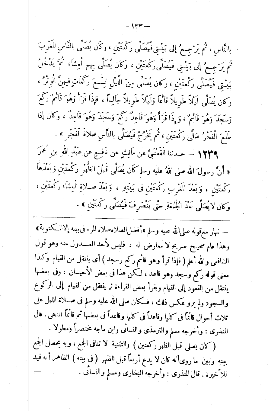 نَهَار مَعَ قَوْله صَلَّى اللَّه عَلَيْهِ وَسَلَّمَ : " أَفْضَل الصَّلَاة صَلَاة الْمَرْء فِي بَيْته إِلَّا الْمَكْتُوبَة " وَهَذَا عَامّ صَحِيح صَرِيح لَا مُعَارِض لَهُ ، فَلَيْسَ لِأَحَدٍ الْعُدُول عَنْهُ وَهُوَ قَوْل الشَّافِعِيّ وَاَللَّه أَعْلَم