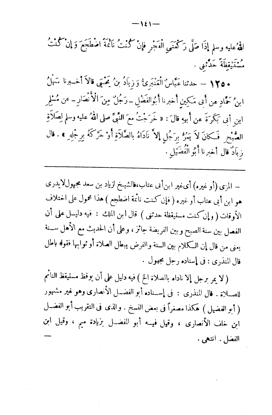 قَالَ الْمُنْذِرِيُّ : فِي إِسْنَاده أَبُو الْفَضْل الْأَنْصَارِيّ وَهُوَ غَيْر مَشْهُور